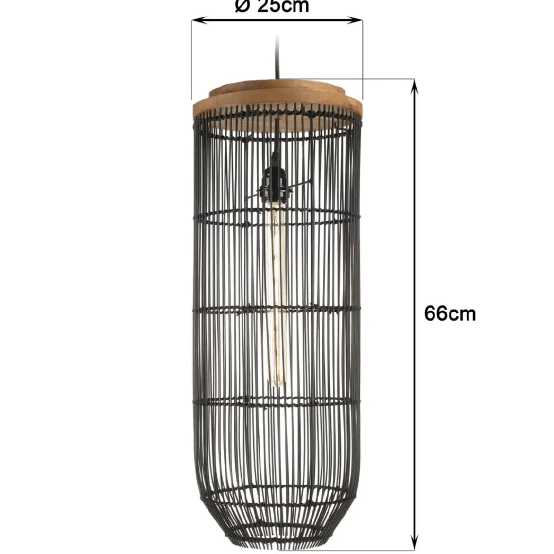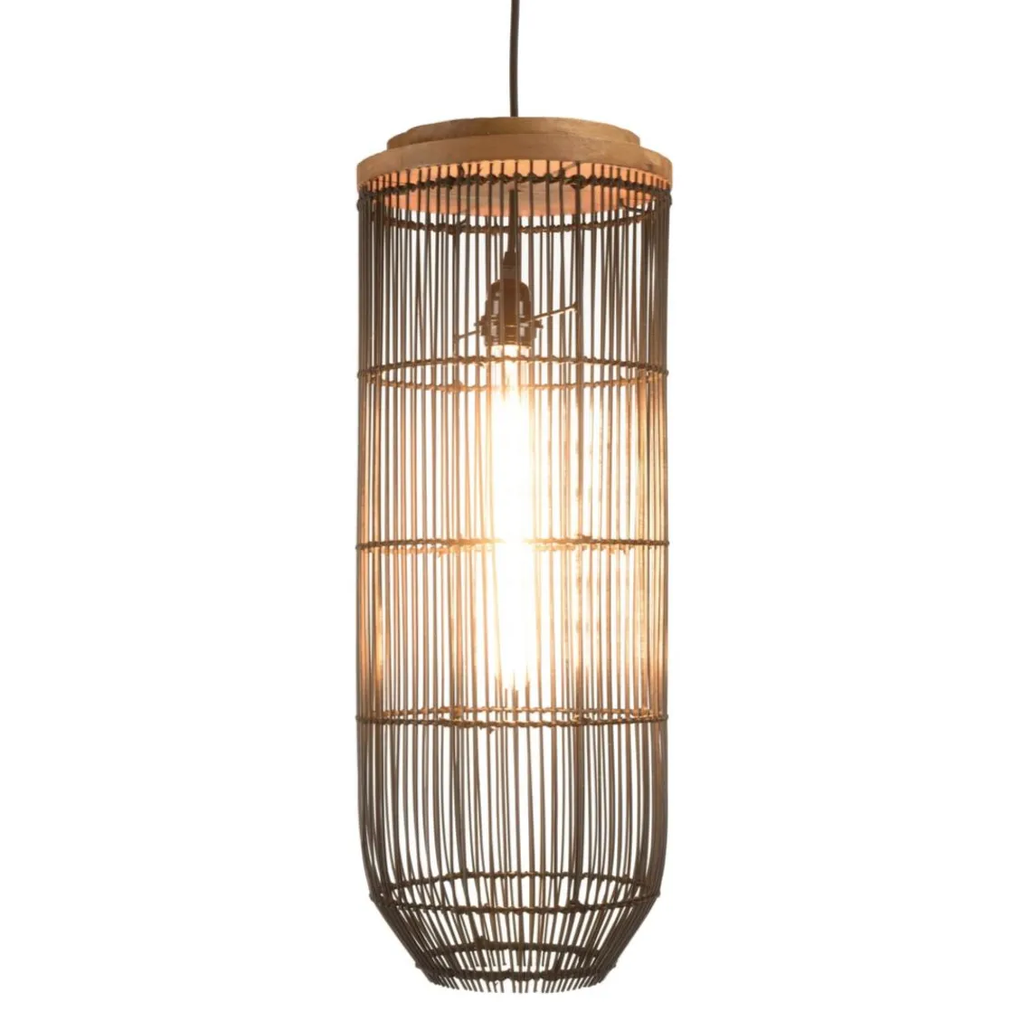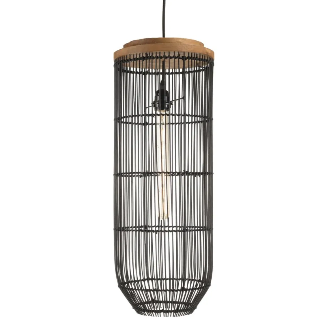 Caractéristiques Suspension « longue » en rotin couleur noire et teck SIXTINE