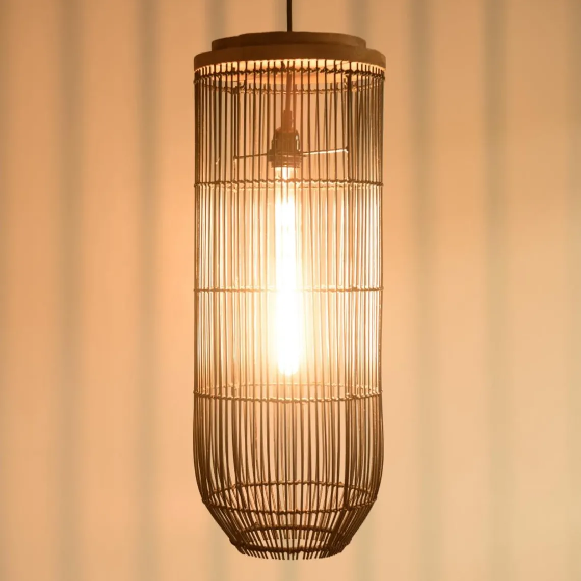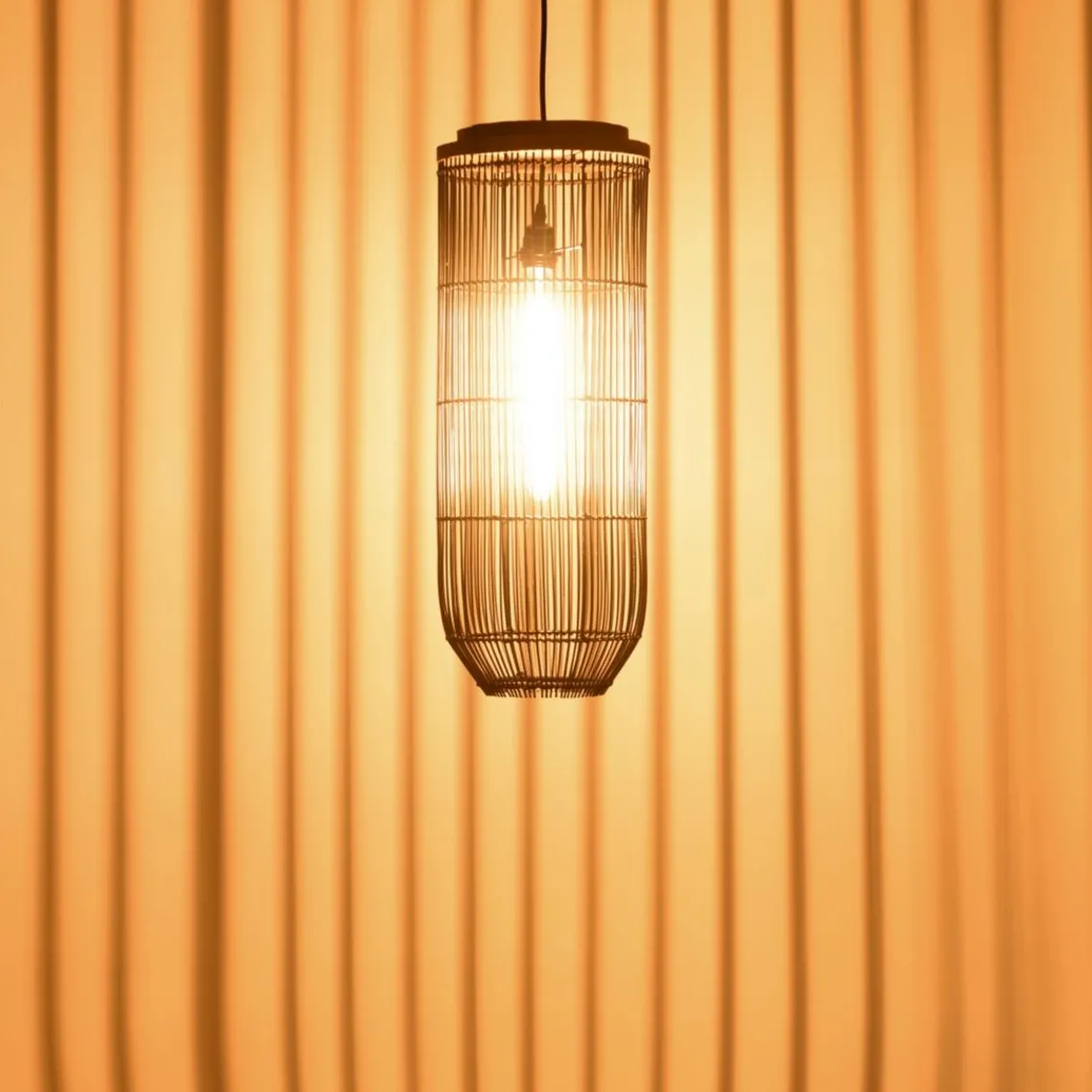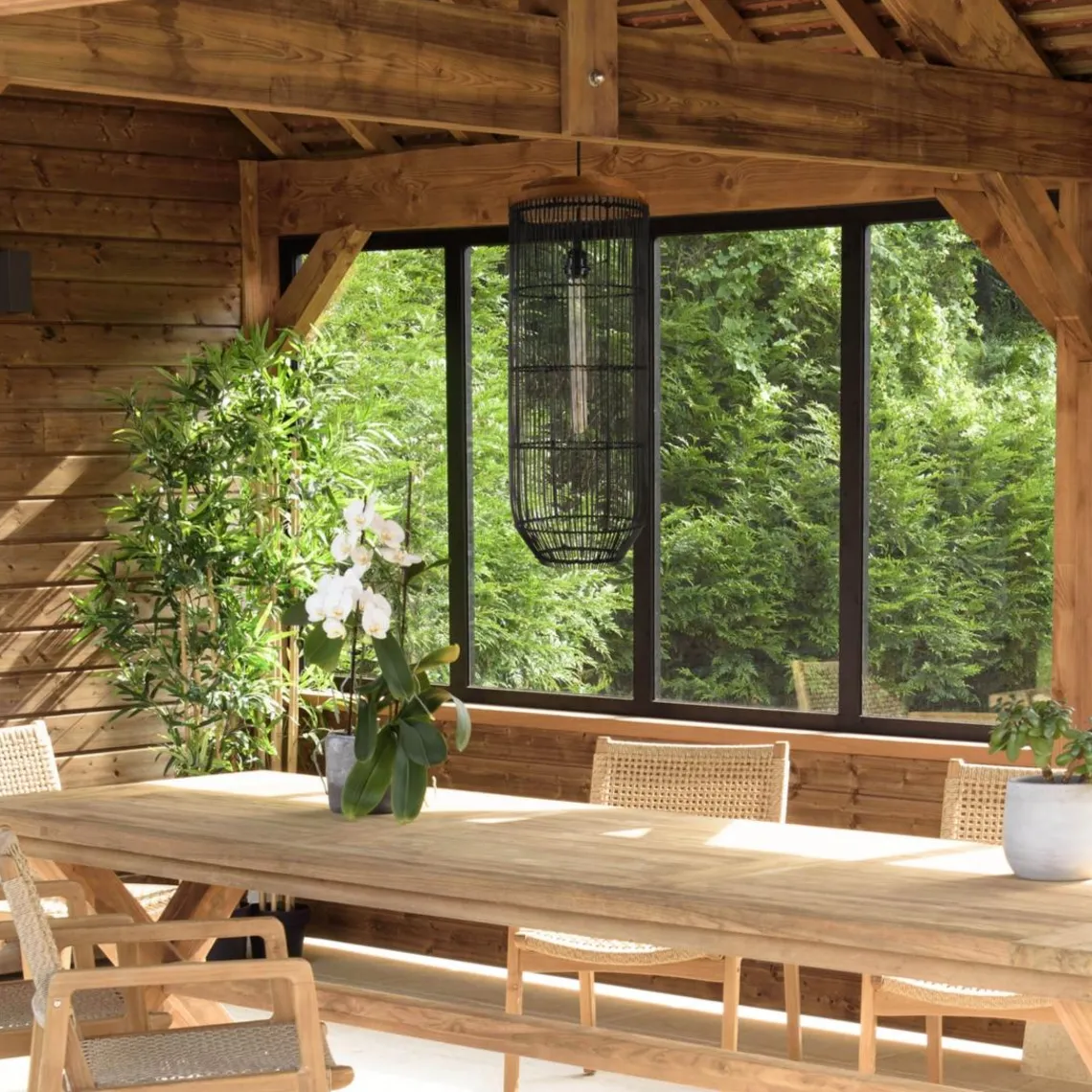 Caractéristiques Suspension « longue » en rotin couleur noire et teck SIXTINE
