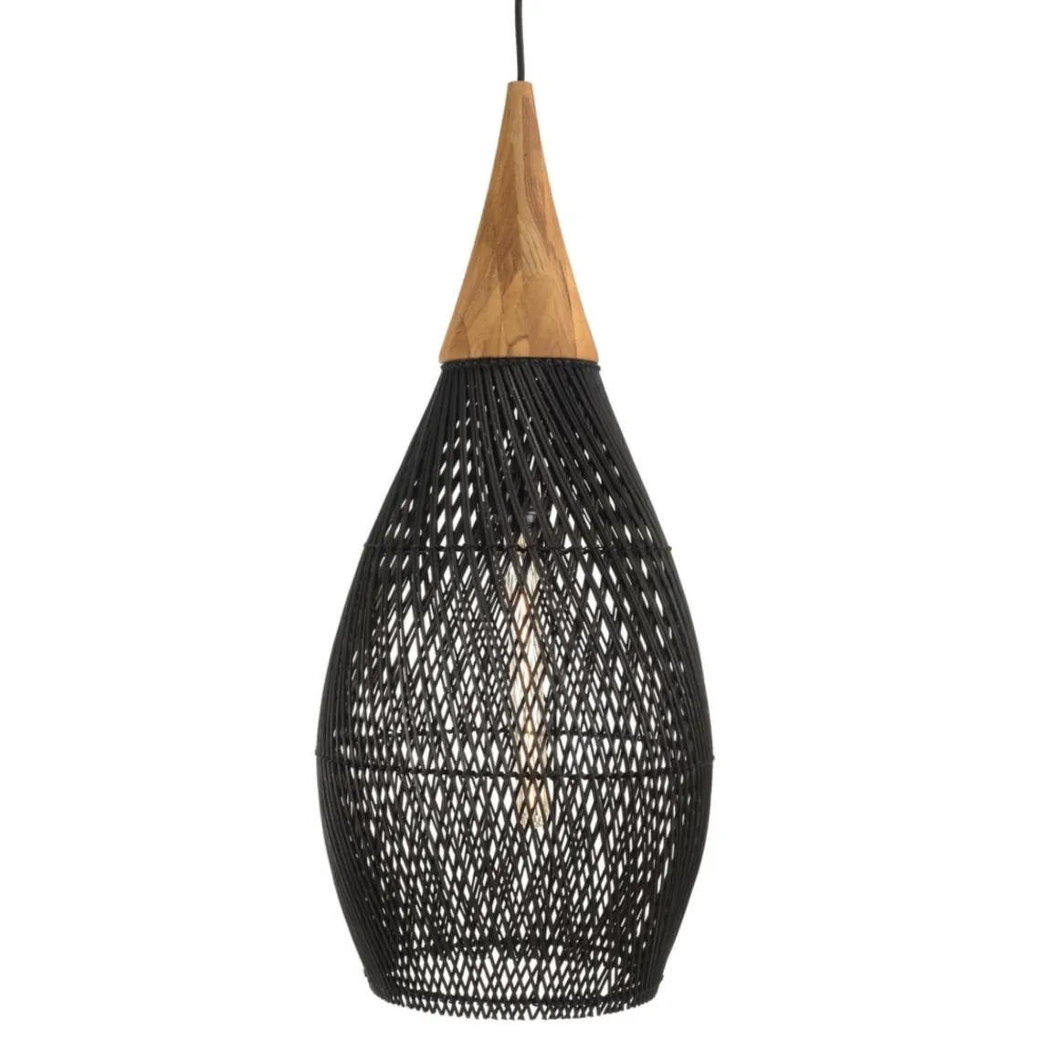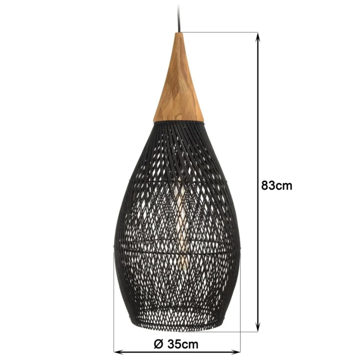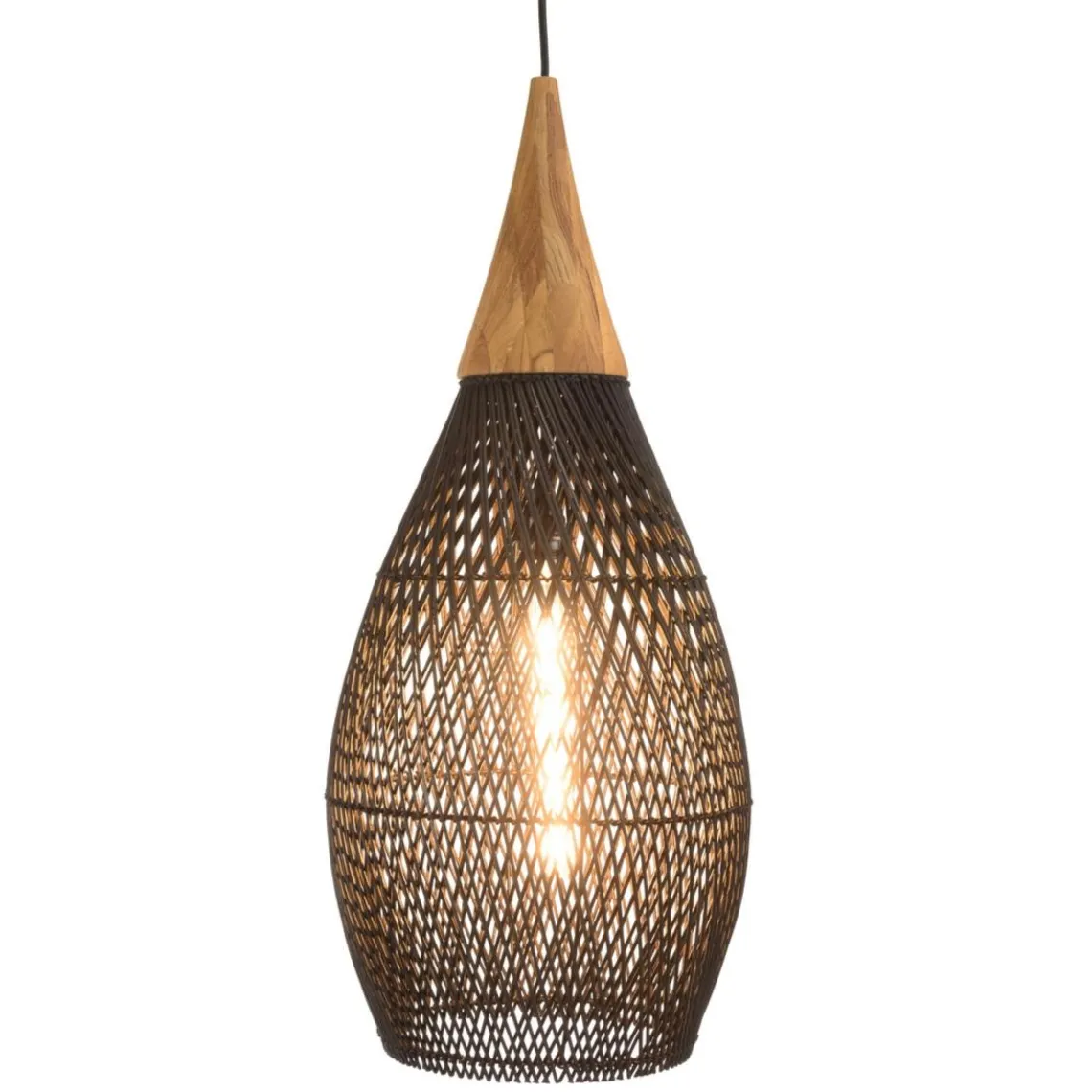 Caractéristiques Suspension « goutte » en rotin couleur noire et teck SIXTINE