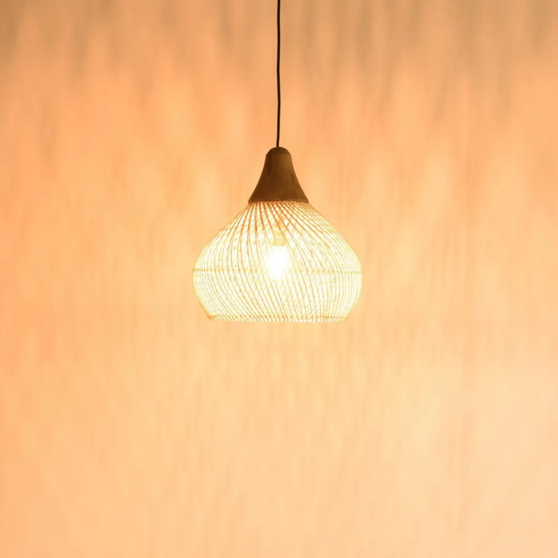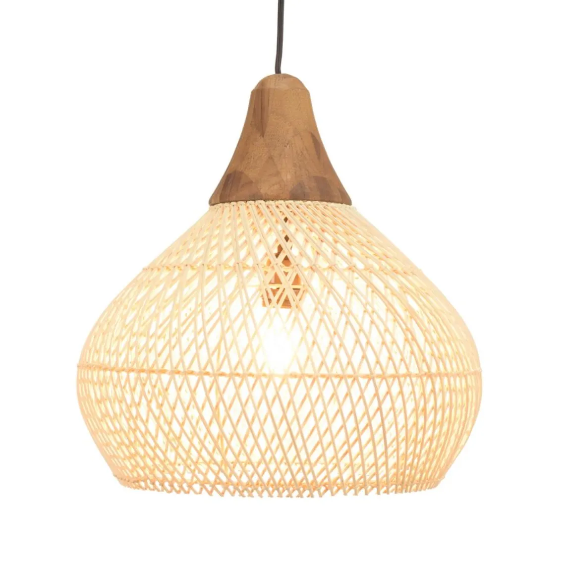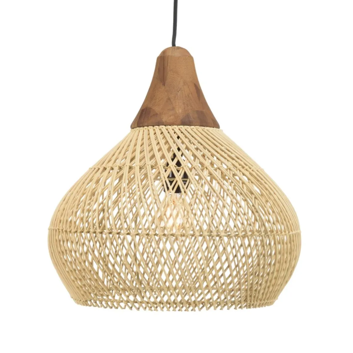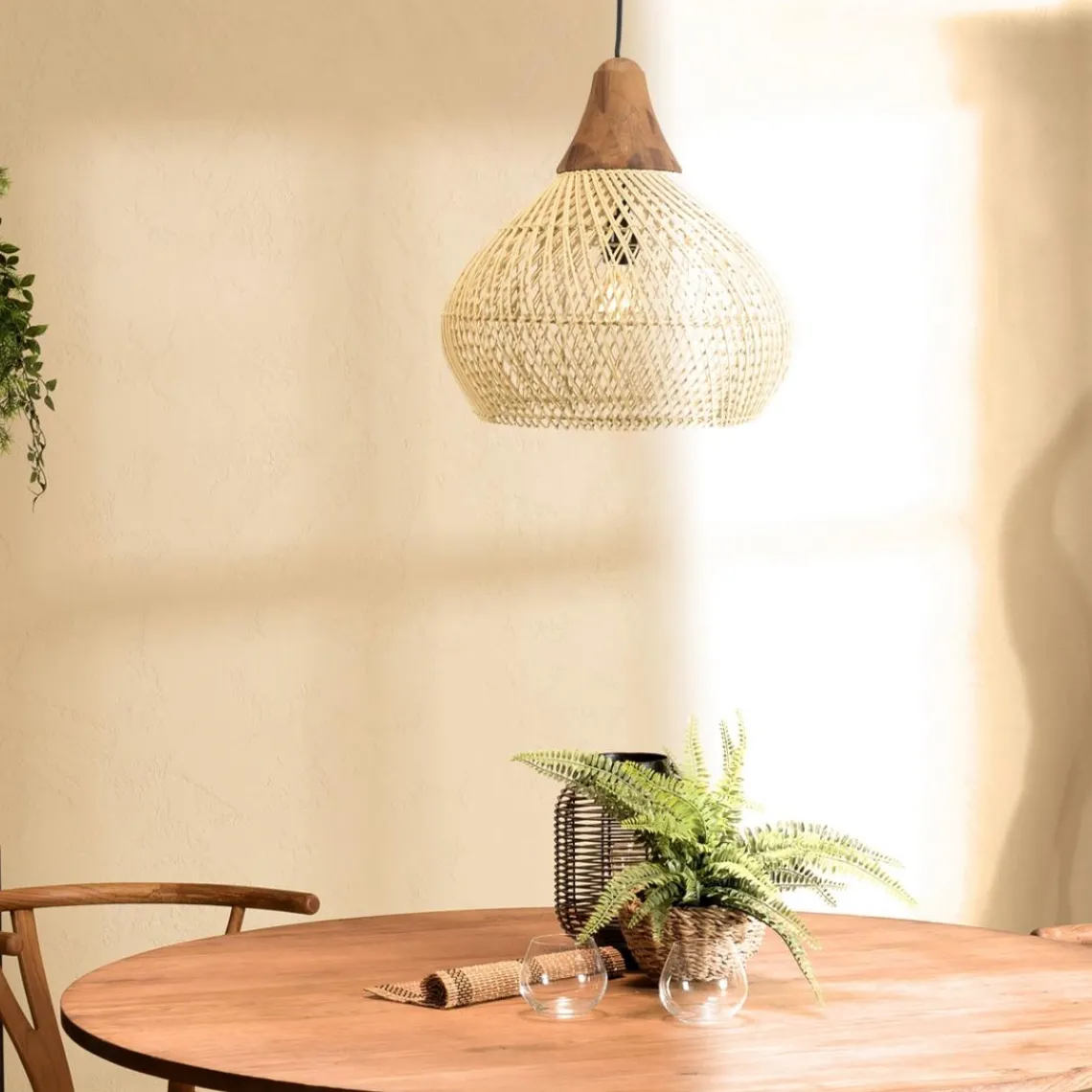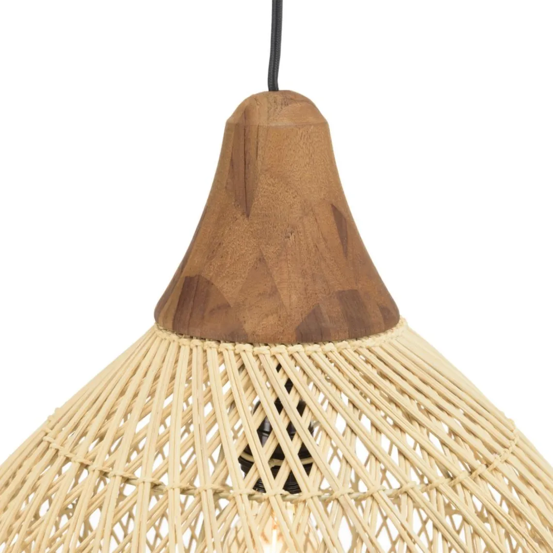 Caractéristiques Suspension « cloche » en rotin couleur naturelle et teck SIXTINE