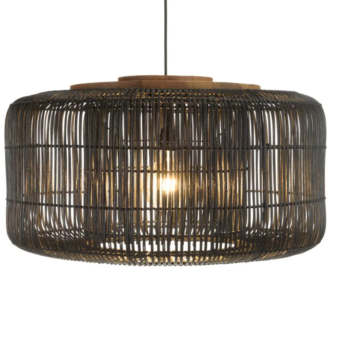 Caractéristiques Suspension « seau » en rotin couleur noire et teck SIXTINE