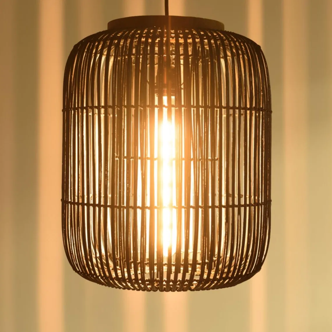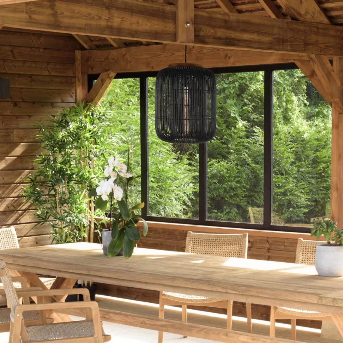 Caractéristiques Suspension « allongée » en rotin couleur noire et teck SIXTINE