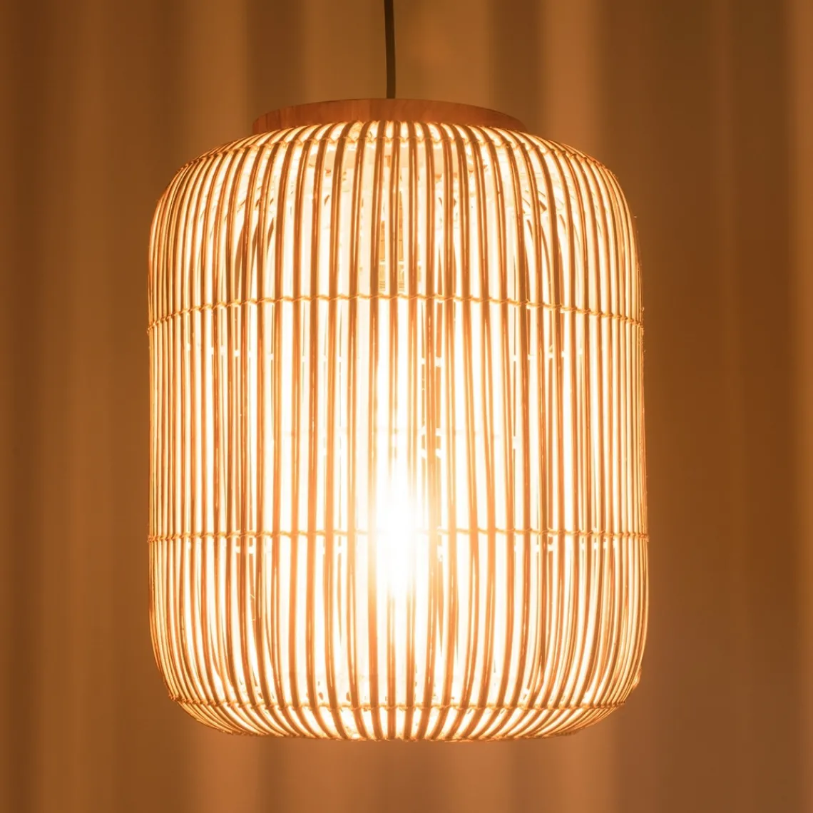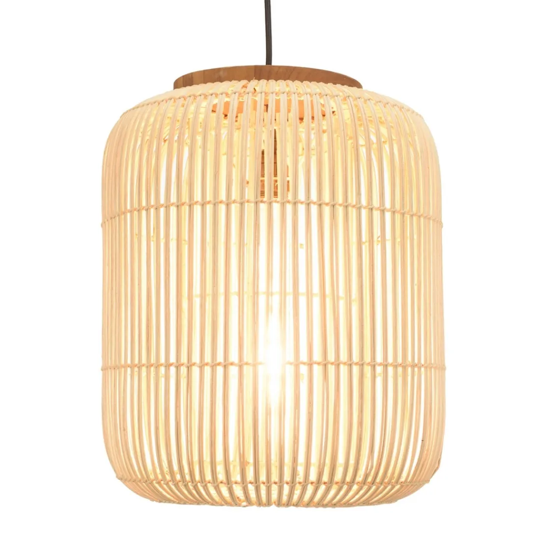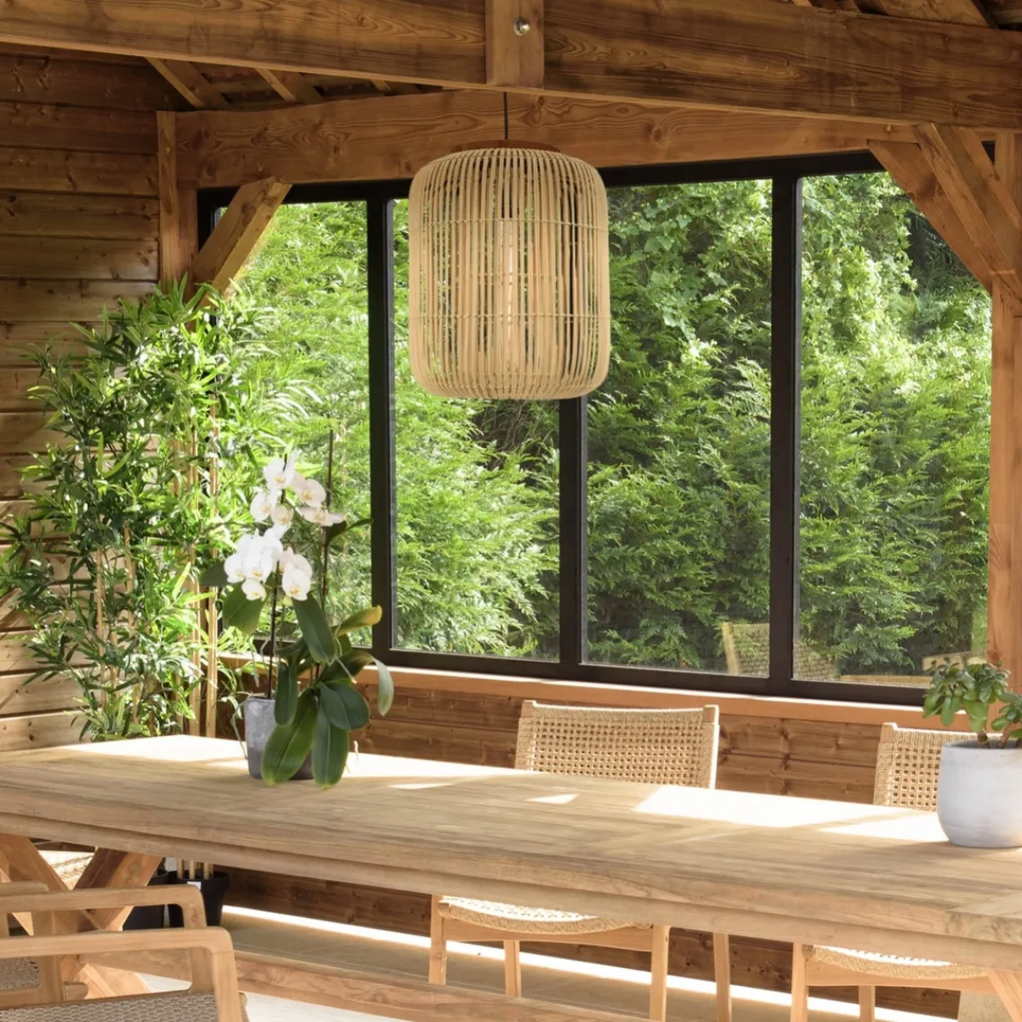 Caractéristiques Suspension « allongée » en rotin couleur naturelle et teck SIXTINE