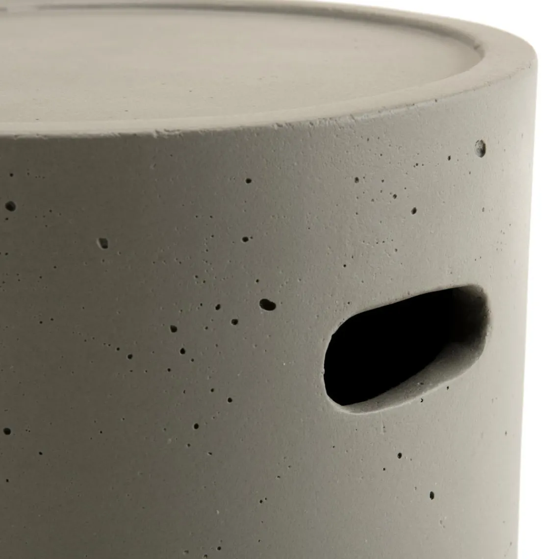 Tendance et pratique, le béton est le matériau idéal pour les meubles de jardin. Dotée d’ouvertures afin de faciliter son déplacement, cette table d’appoint est également très fonctionnelle.