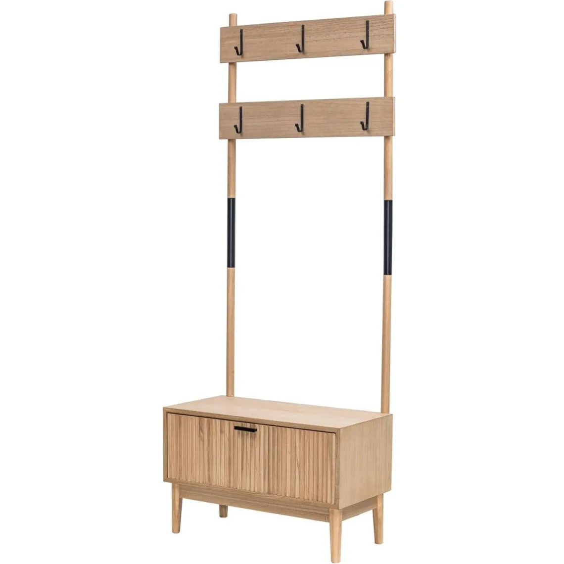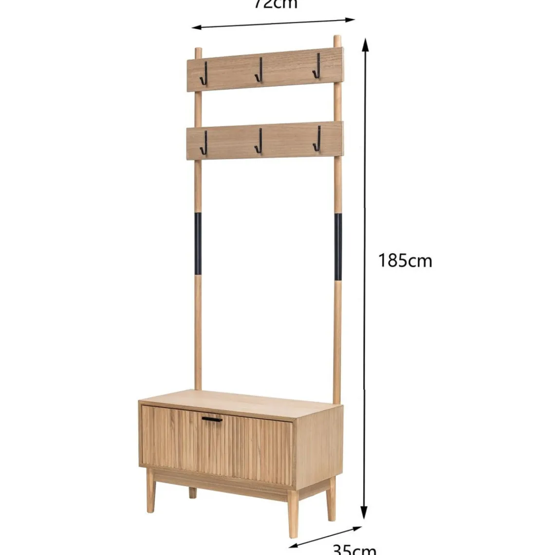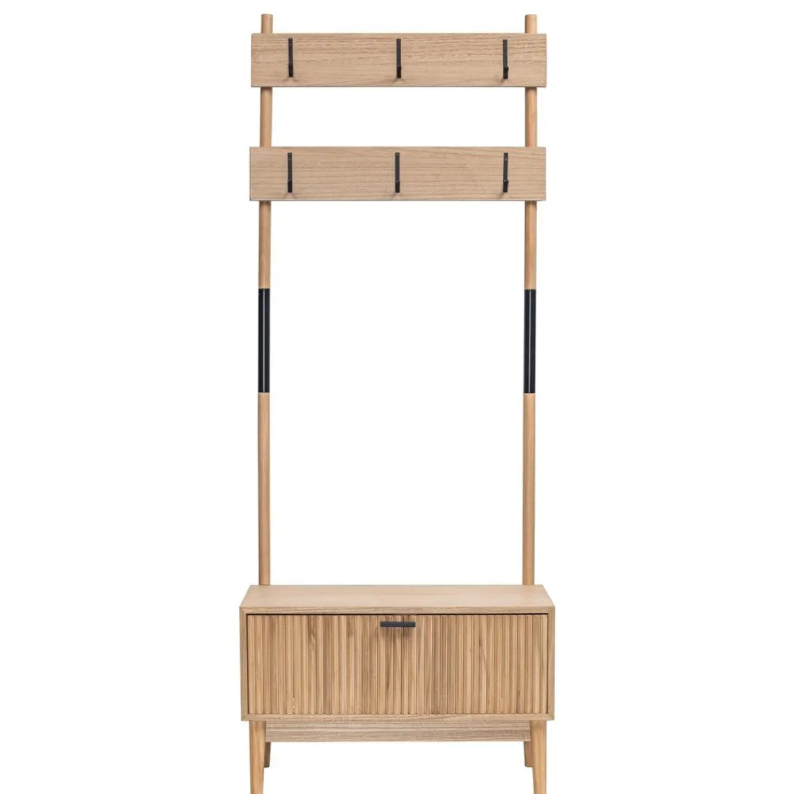 Découvrez le superbe Vestiaire d’entrée de la marque Nordlys. Avec une hauteur de 185 cm, ce meuble est doté de lignes épurées et modernes. Sa largeur et sa profondeur se mesurent à 35 cm tandis que sa longueur est de 72 cm. Le vestiaire Nordlys présente une charmante alliance entre le bois et le métal, apportant une chaleur naturelle et une touche industrielle à votre entrée. Profitez de son étagère, ses porte-manteaux et sa barre métallique pour suspendre vos vêtements.