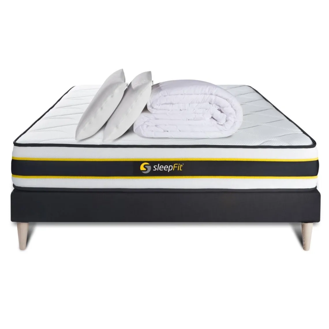 Offrez-vous un sommeil de rêve avec le pack matelas FLEXY sommier noir Couette et 2 oreillers de marque Sleepfit. Conçu pour garantir un confort optimal, ce pack tout-en-un se compose d’un matelas en mousse, authentique et d’une couleur Noir élégante. Le lit est surmonté d’une couette douillette et de deux oreillers moelleux pour une expérience de sommeil vraiment luxueuse. Le sommier robuste en noir offre un soutien stable et sécurisé. Cet ensemble matelas sommiers est la clé pour un sommeil réparateur chaque nuit.