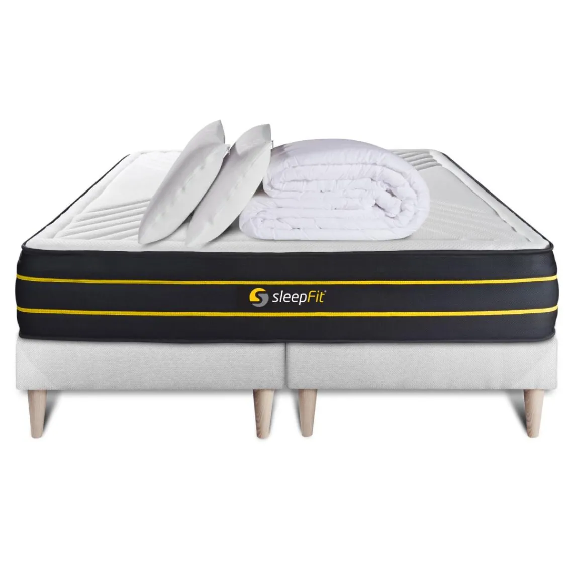 Découvrez le confort ultime avec le Pack matelas ULTRA double sommiers blanc Couette et 2 oreillers de la marque Sleepfit. Cet ensemble matelas sommiers offre une esthétique authentique qui saura compléter votre chambre à coucher. De couleur blanc, le tissu de l’ensemble procure une douceur incomparable et promet des nuits apaisantes. La couette et les deux oreillers inclus ajoutent une touche supplémentaire de confort. Grâce à sa conception de qualité, ce pack apporte une sensation de bien-être et une garantie de durabilité. Le design épuré du matelas et des sommiers assure une allure élégante à votre intérieur.