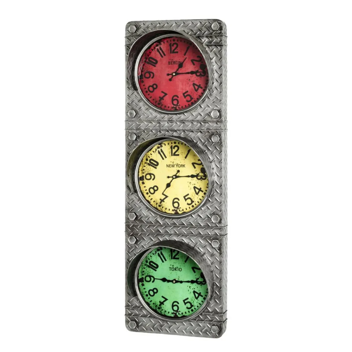 Métal laqué anthracite, avec 3 horloges optique feu de circulation, monté