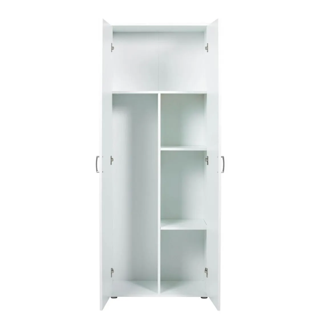 Offrez-vous cette Armoire ARCONATI Blanc pour organiser et ranger aisément vos produits. Spacieuse, elle possède un empiècement pour vos balais, trois étagères et une tablette supérieure. Elle s’équipe de deux portes avec poignées, beaucoup d’espace de rangement grâce aux 4 étagères et aux séparations pratiques. Hauteur des étagères variable grâce à 3 trous pour les supports d’étagères.