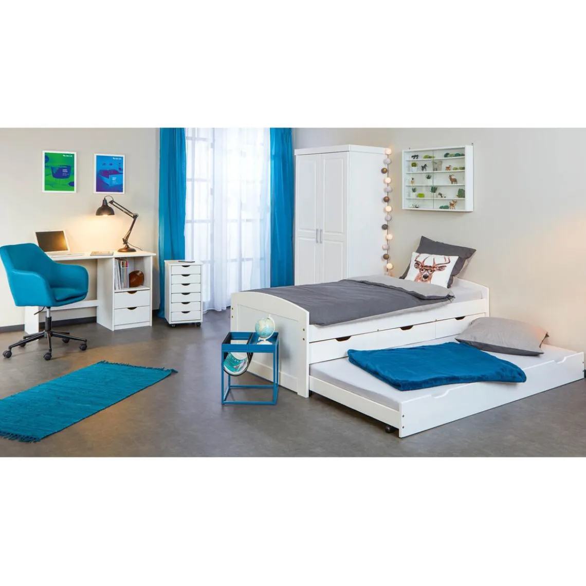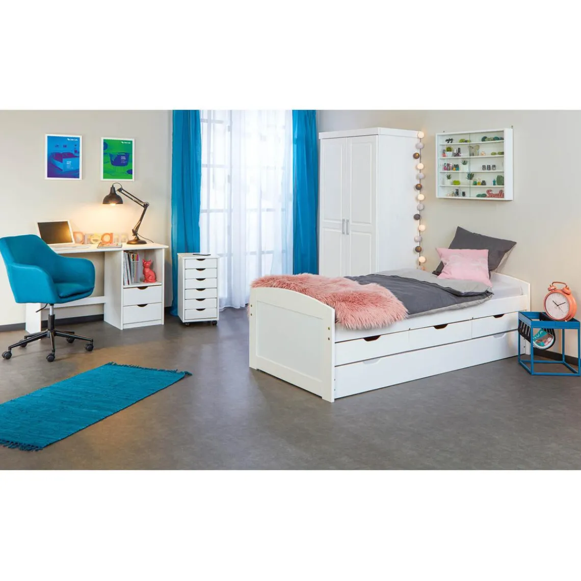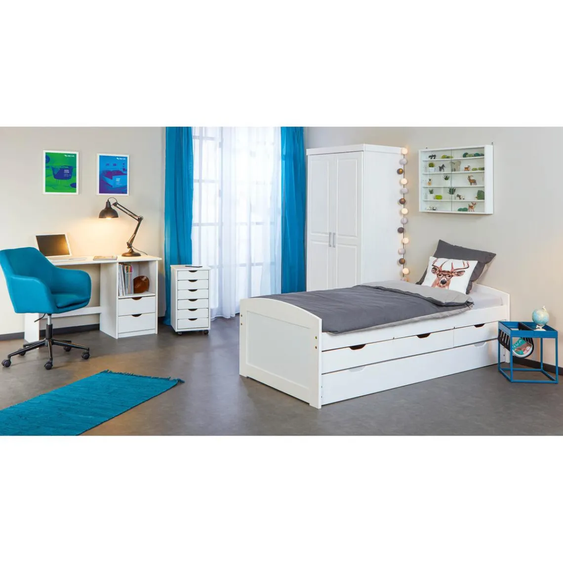 Appréciez la structure moderne de cette Armoire HAKON. Les 2 grandes portes donnent sur un large espace composé d’une penderie et d’une petite étagère tablette. La couleur blanche dépose une touche moderne à l’ensemble. Faite de bois de pin massif, elle perdure dans le temps et vous assure une grande capacité d’accueil.