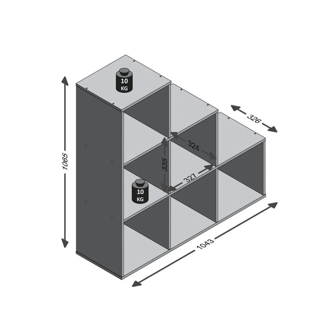 Caractéristiques Bibliothèque 6 Compartiments Béton MEGA