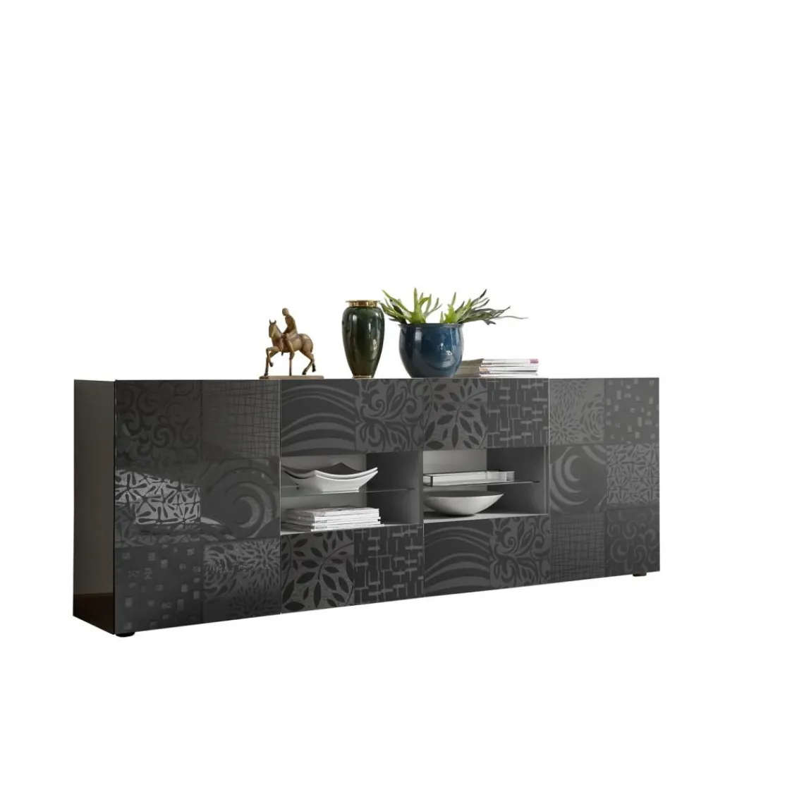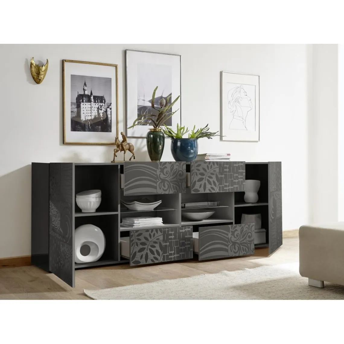 Caractéristiques Buffet 2 portes et 4 tiroirs gris