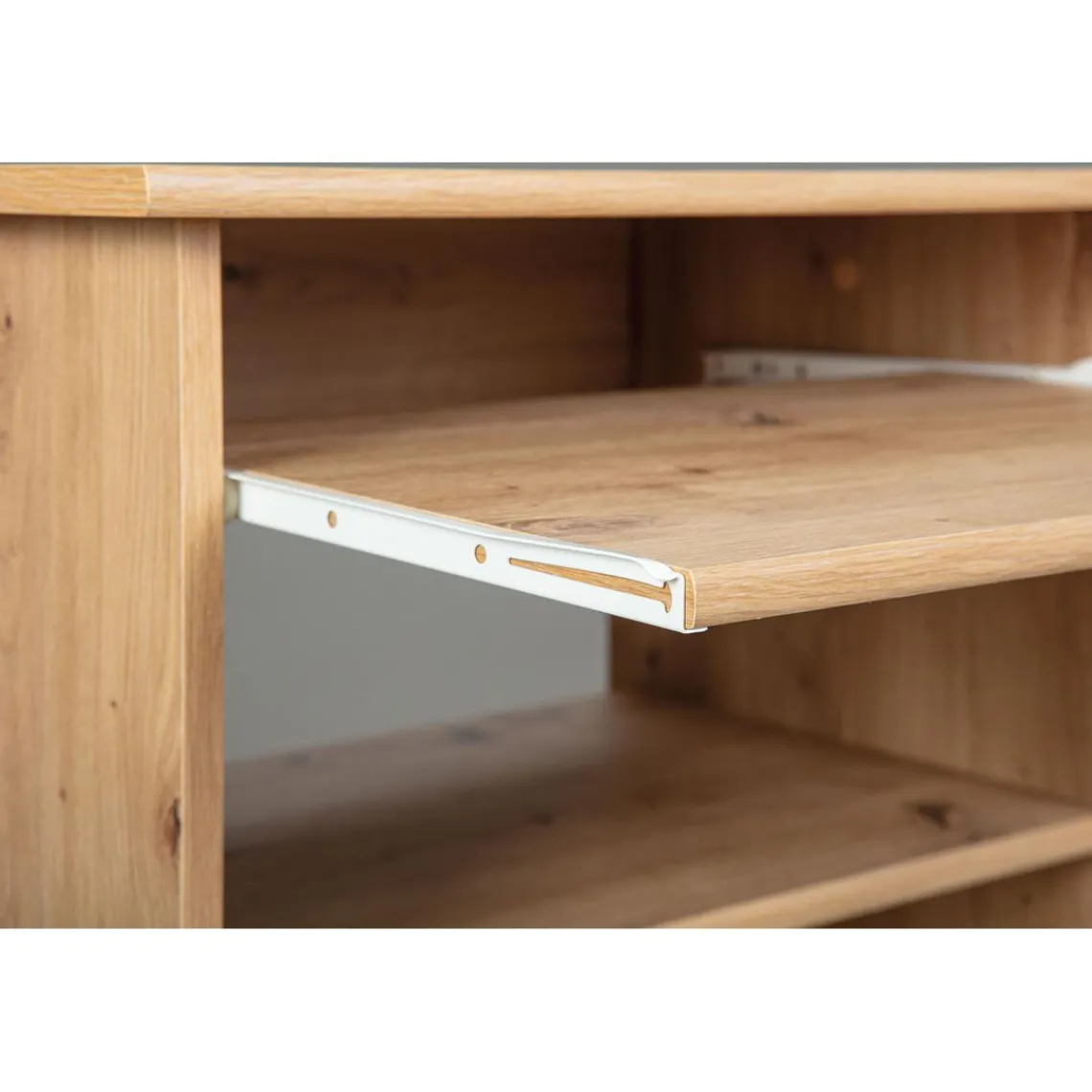 Le Bureau Informatique ADDU Imitation Chêne Artisan est très ergonomique. Il dispose d’une niche pour ordinateur et d’une étagère coulissante pour le clavier. Sa matière en panneau de particules est facile à nettoyer.