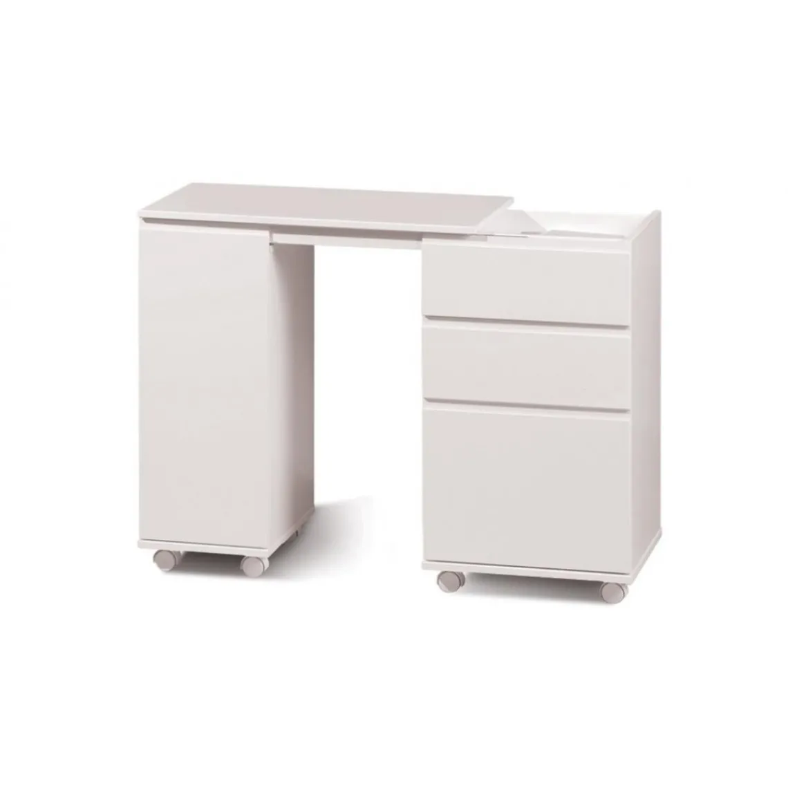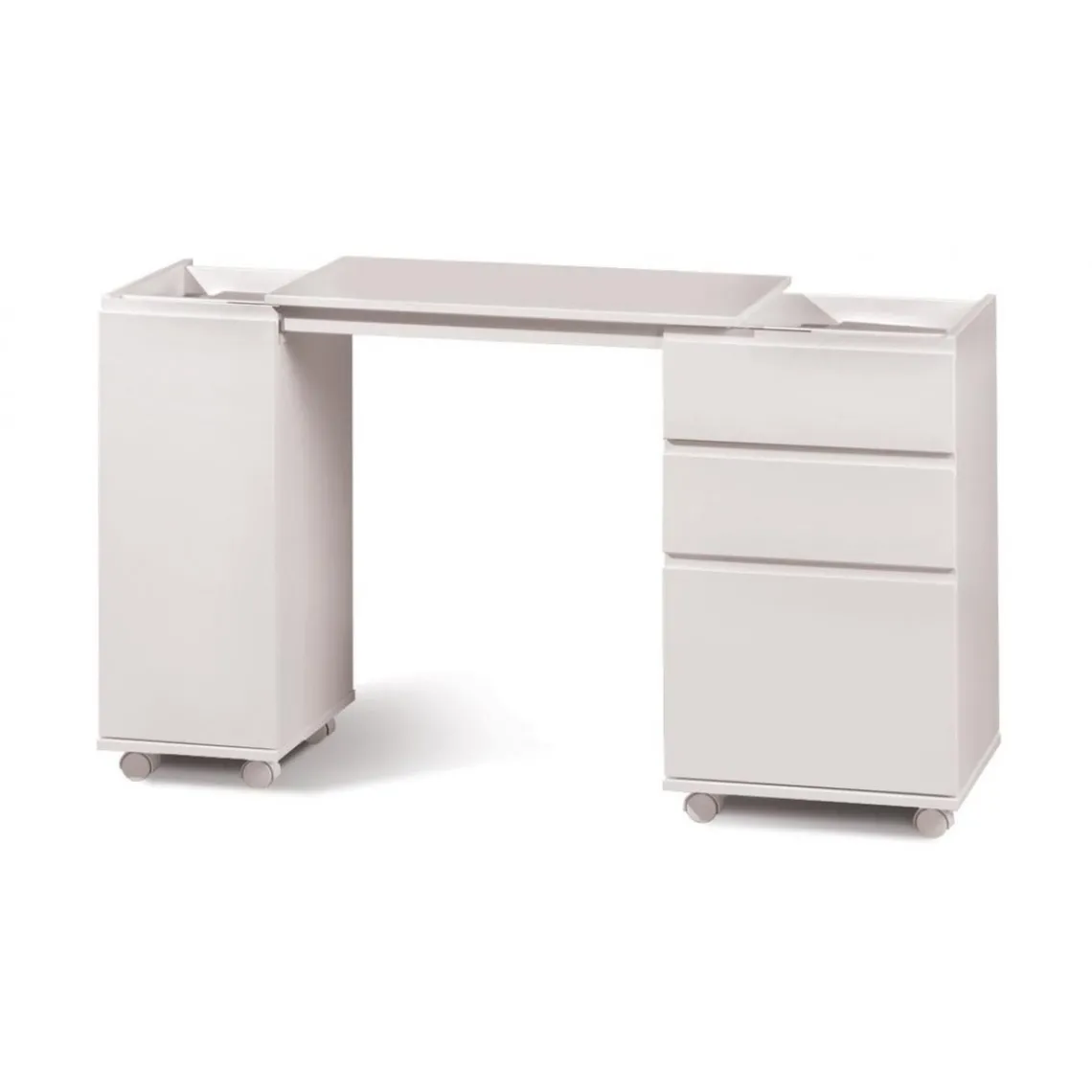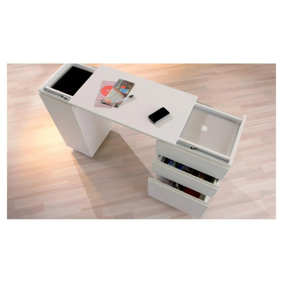 Un magnifique bureau extensible composé de 3 tiroirs de rangement et de deux espaces de rangement sur le dessus.