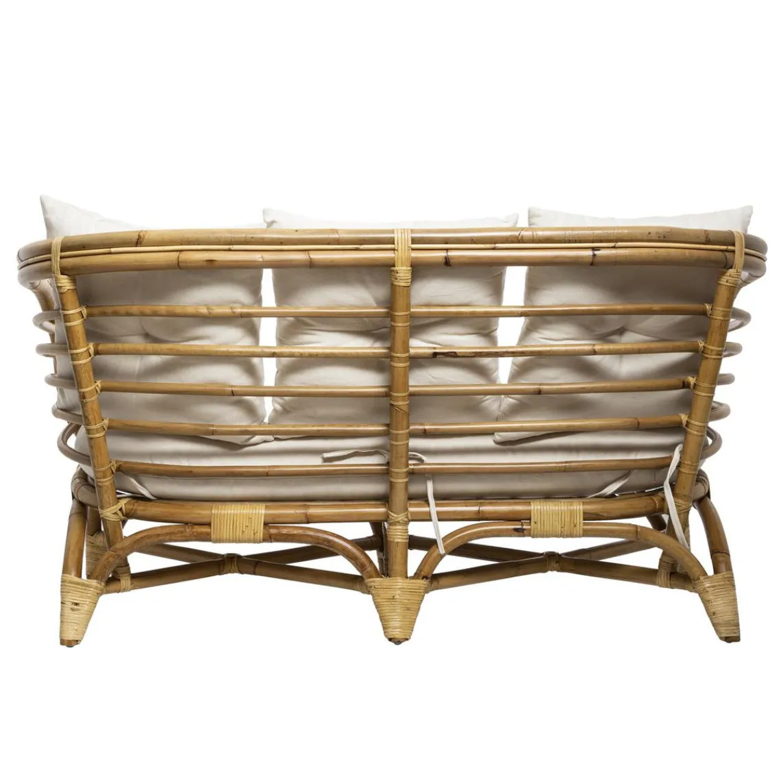 Le canapé droit Farah de chez 3S. x Home fait partie de la catégorie des canapés en rotin. Doté d’un charme indéniable, il arbore une couleur blanche immaculée qui apporte de la luminosité à chaque coin de la maison. Mesurant 74 cm de hauteur et 147 cm de longueur, ce canapé spacieux offre un confort optimal grâce à ses larges dimensions. Il est constitué de rotin tressé, une matière très douce au toucher et particulièrement résistante. Son style authentique se marie parfaitement avec un environnement naturel et chaleureux. Les détails de son tressage, visibles sur l’image fournie, apportent une vraie touche d’élégance et de sophistication.