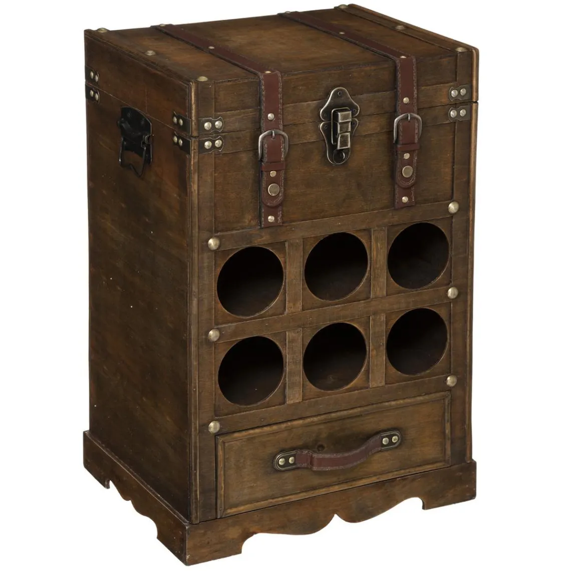 Choisissez ce Coffre Bar Bois, un mobilier de rangement à la fois pratique et design. Il se compose de six trous de même dimension, d’un tiroir et d’un coffre de rangement. Peu encombrant, ce modèle s’incruste aisément dans votre intérieur.