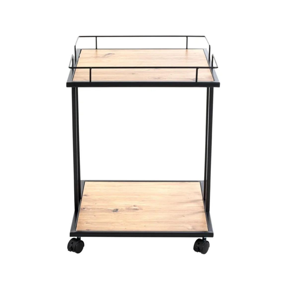 Cette Desserte à roulettes 3S. x Home st un mélange élégant de style et de fonctionnalité. Elle offre un magnifique contraste avec sa structure en tube d’acier laqué Noir et ses plateaux en contreplaqué (MDF) décorés en chêne. Les roulettes robustes permettent un déplacement facile, quel que soit la pièce dans laquelle vous l’utilisez. La structure en métal donne une forte impression de durabilité. Son design épuré permettra de l’adapter à n’importe quel style d’intérieur.