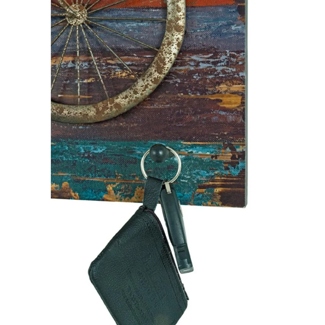 Le produit est une garderobe murale en relief, style vintage. Cette 3S. x Home est dotée de 5 crochets inspirés du vélo et peints dans une palette multicolore pour apporter une touche rétro à votre intérieur. Dans un contraste élégant, 4 crochets supplémentaires en métal noir apportent une touche moderne et pratique. D’une hauteur de 40cm et d’une longueur de 53cm, ce portant valet de chambre convient à tout espace, et son design original fait de lui un véritable élément de décoration.