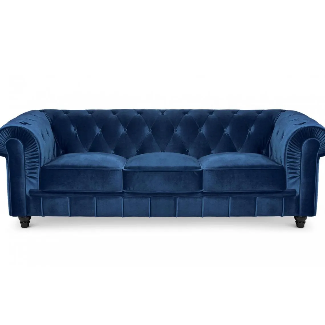 Caractéristiques Grand Canapé Chesterfield 3 places Velours Bleu ANGOL