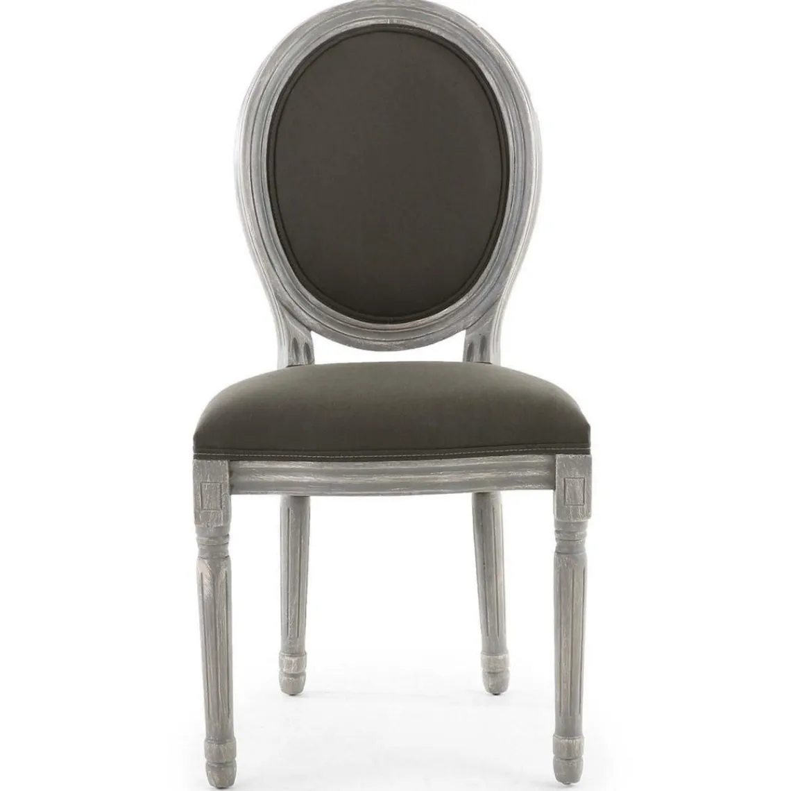 Caractéristiques Lot De 2 Chaises Médaillon Bois Gris Patiné & Tissu Gris VINCI