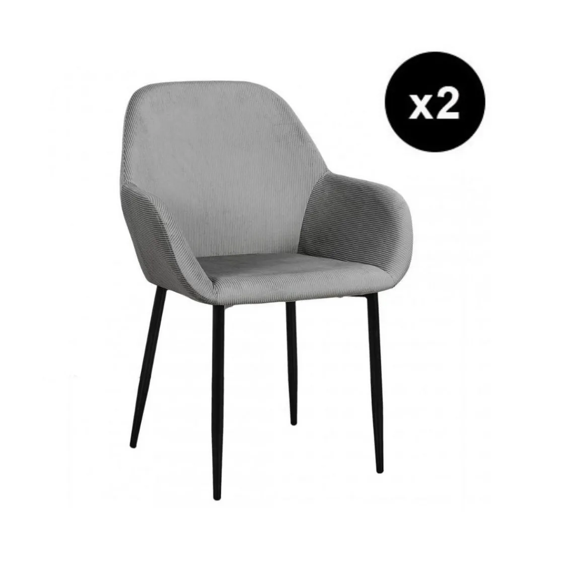 Caractéristiques Lot de 2 Fauteuils GIULIA Gris Foncé Velours Côtelé