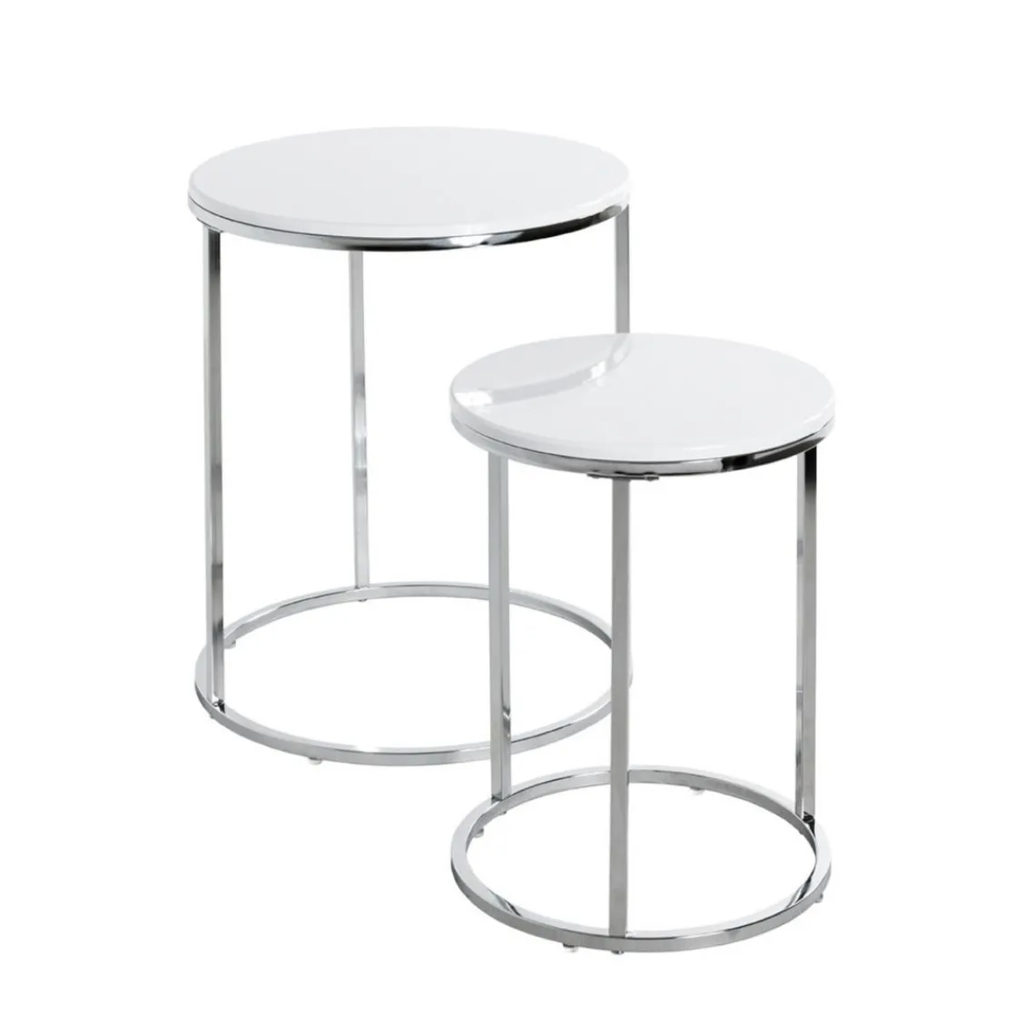 Caractéristiques Lot de 2 tables d’appoint blanc chromé