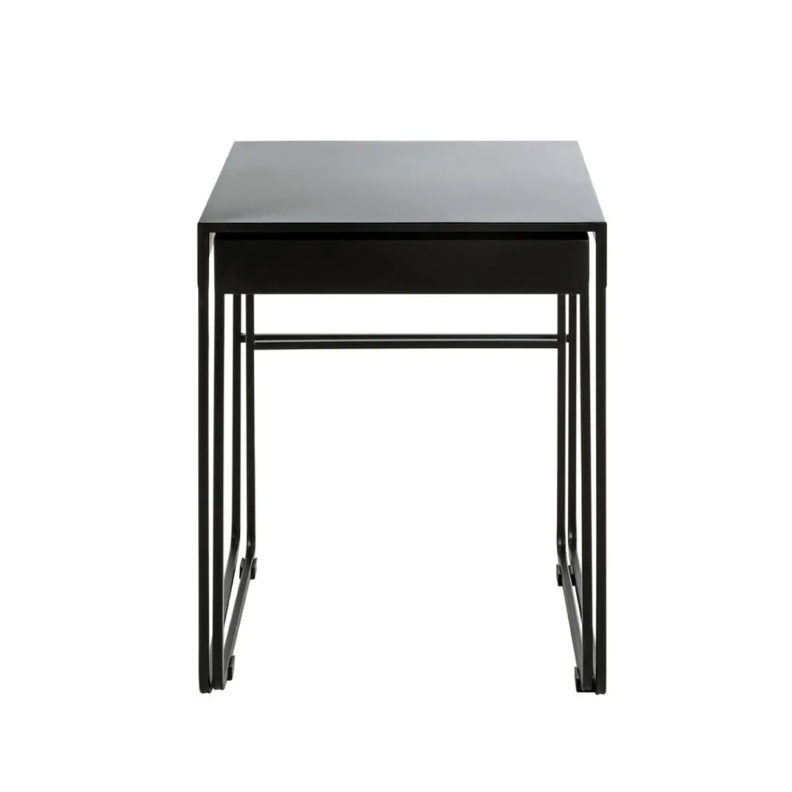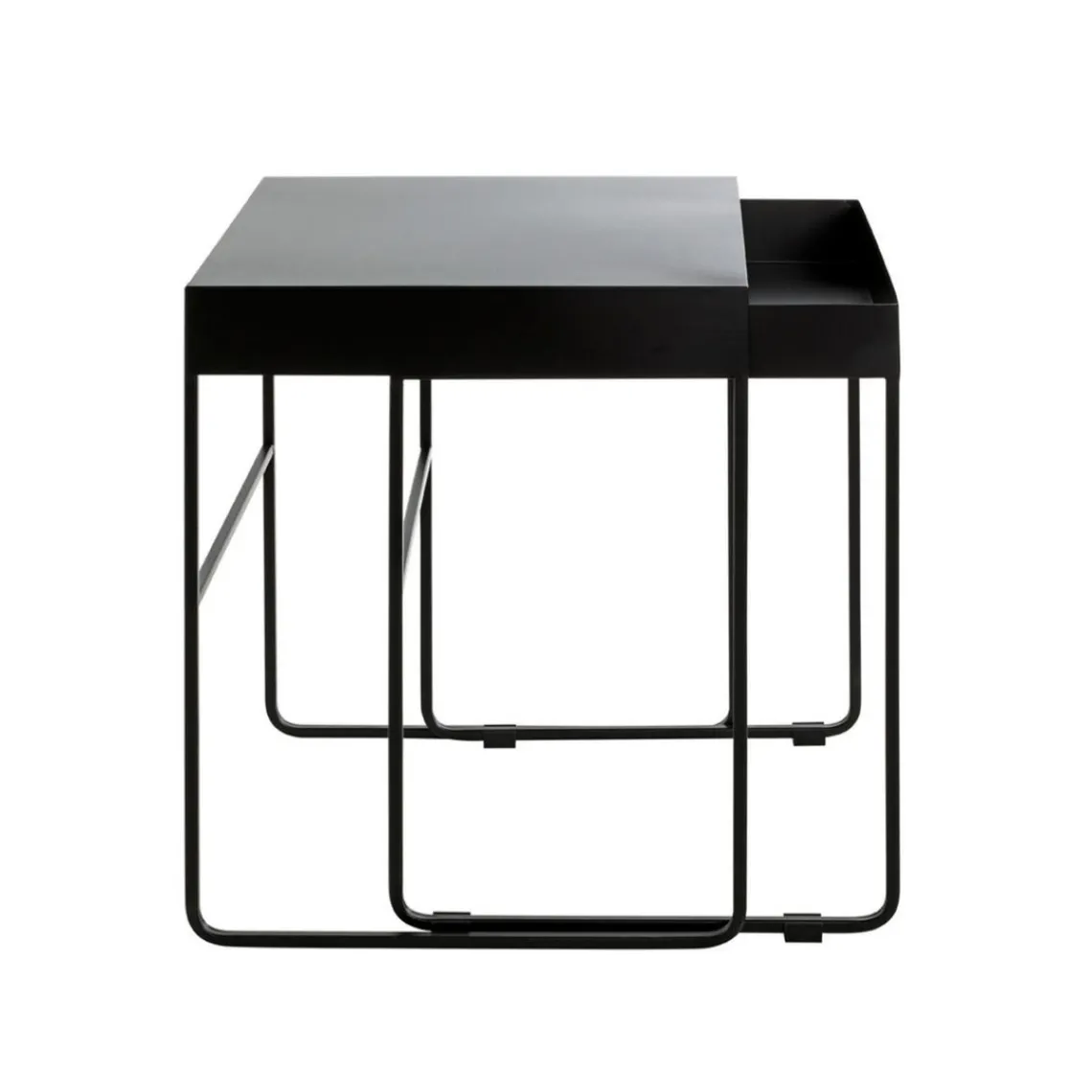 DESCRIPTION À RELIRE : Ce superbe lot de 2 tables d’appoint est issu de la marque 3S. x Home. Présentées en Noir, ces tables confèrent un caractère contemporain à tout intérieur. Elles sont conçues en métal robuste, offrent une ligne épurée et sont d’une maniabilité remarquable. La plus grande des deux se pose directement sur le sol tandis que la plus petite peut être perchée sur la grande. Idéales pour présenter de petits objets décoratifs, elles sont aussi parfaites comme support temporaire pour des boissons ou des snacks.