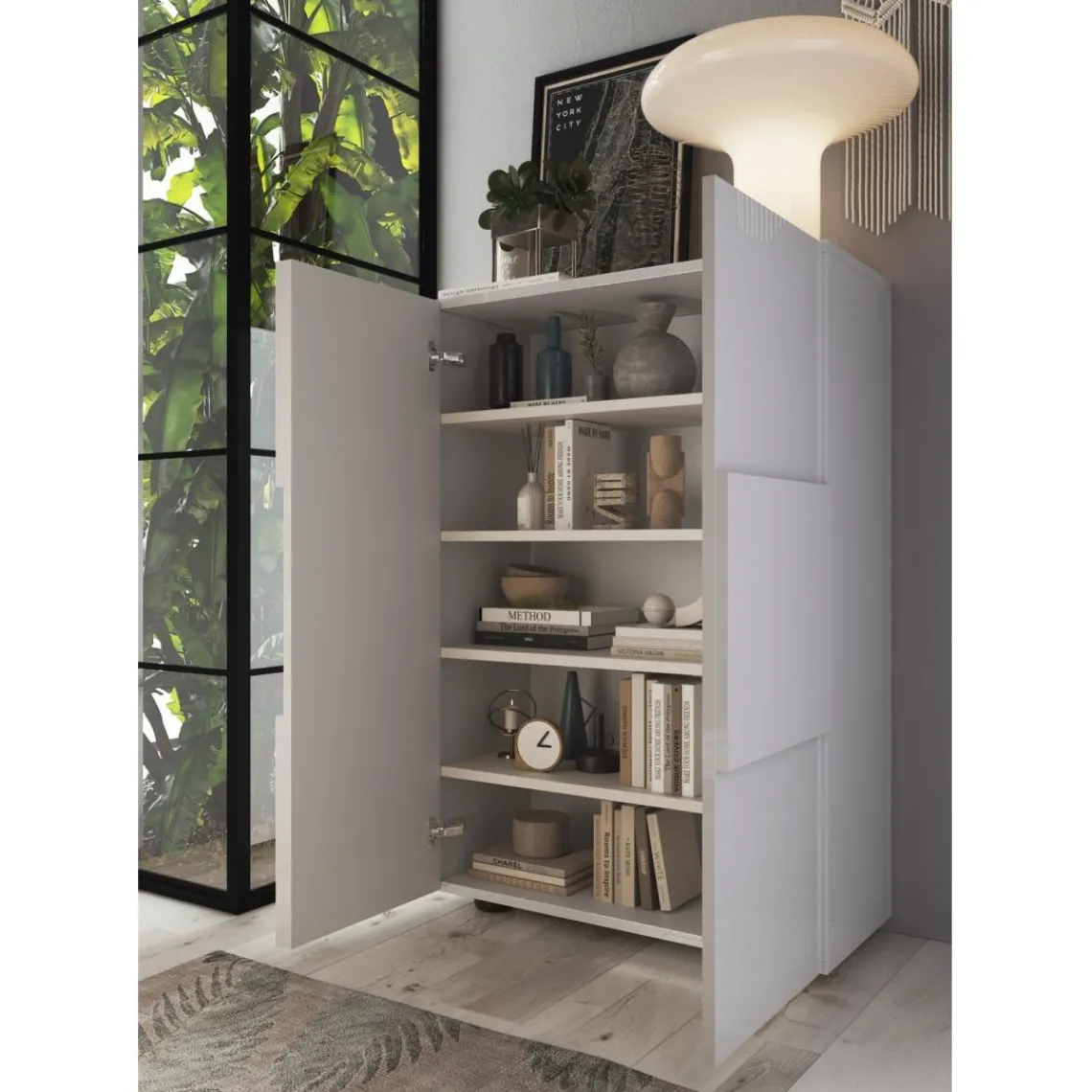 Caractéristiques Meuble de rangement Damano 2 Portes Laqué Blanc Brillant 4 étageres L78xH 116 cm