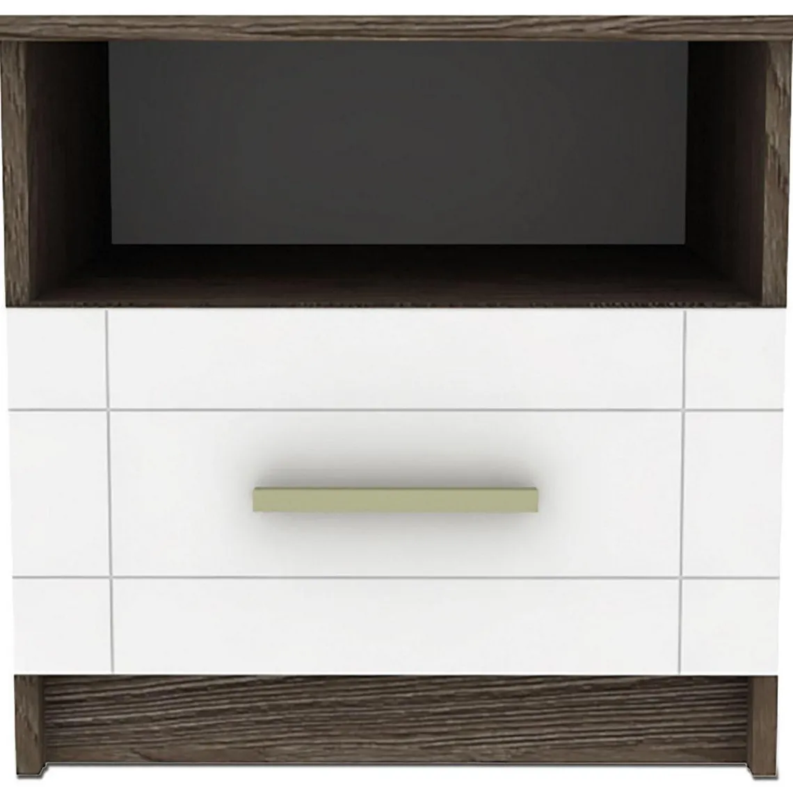 Indispensable de tout chambre à coucher, cette Table de chevet 1 tiroir Chêne foncé et Blanc rend votre intérieur plus confortable et joliment décoré. Elle possède un design moderne avec sa structure en bois associé à la façade blanche décoré de motifs géométriques.