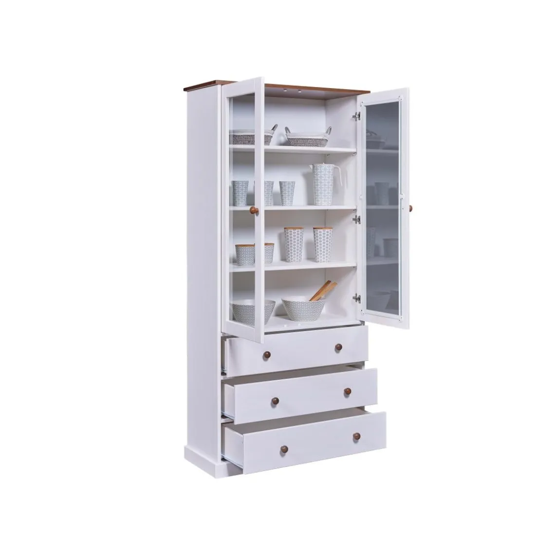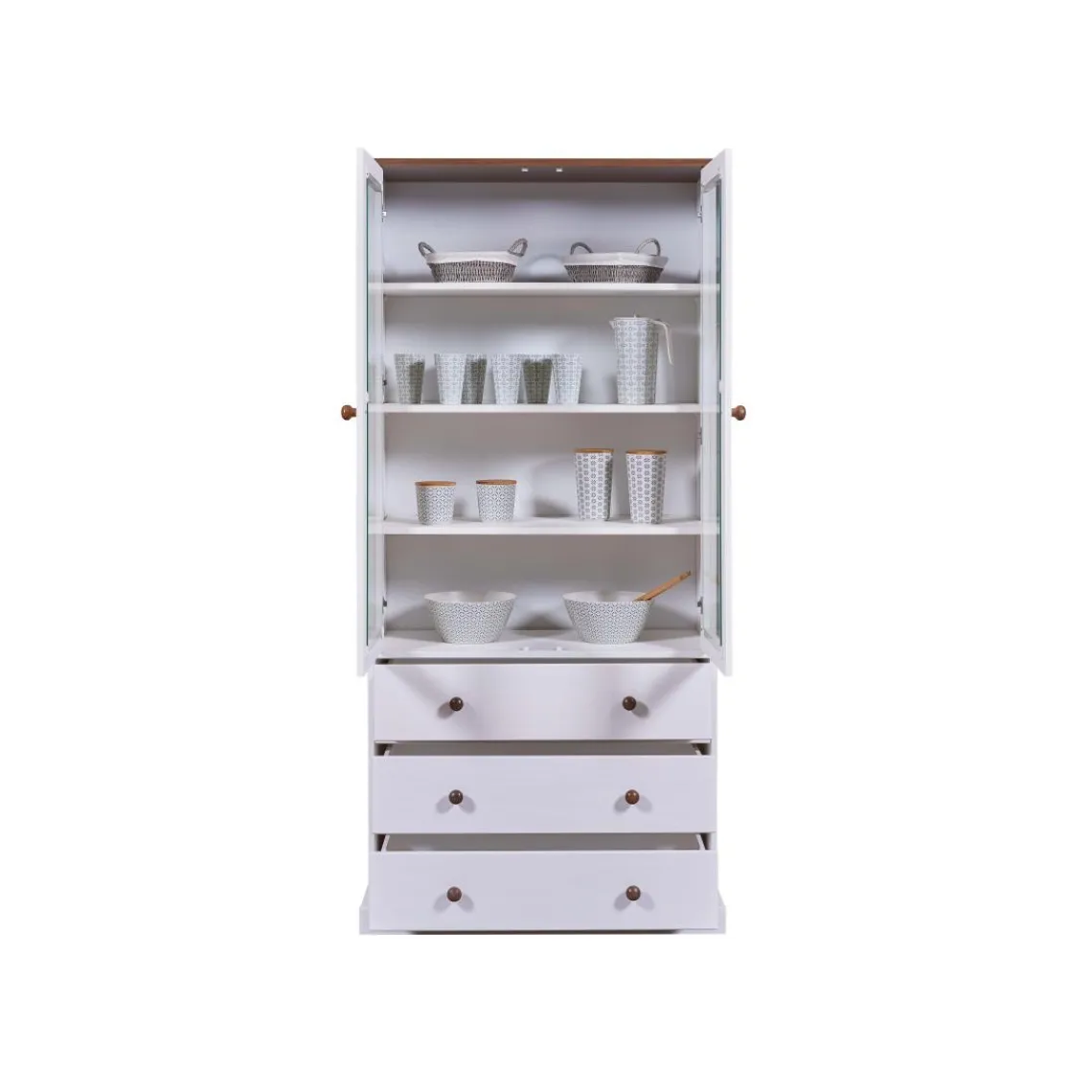 Caractéristiques Vaisselier 2 portes vitrées 3 tiroirs WESTERLAND pin massif vernis blanc