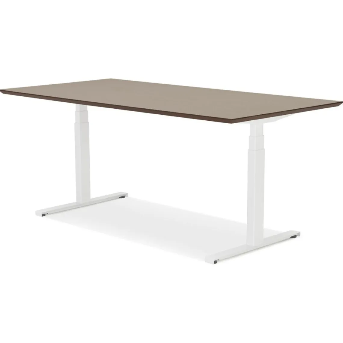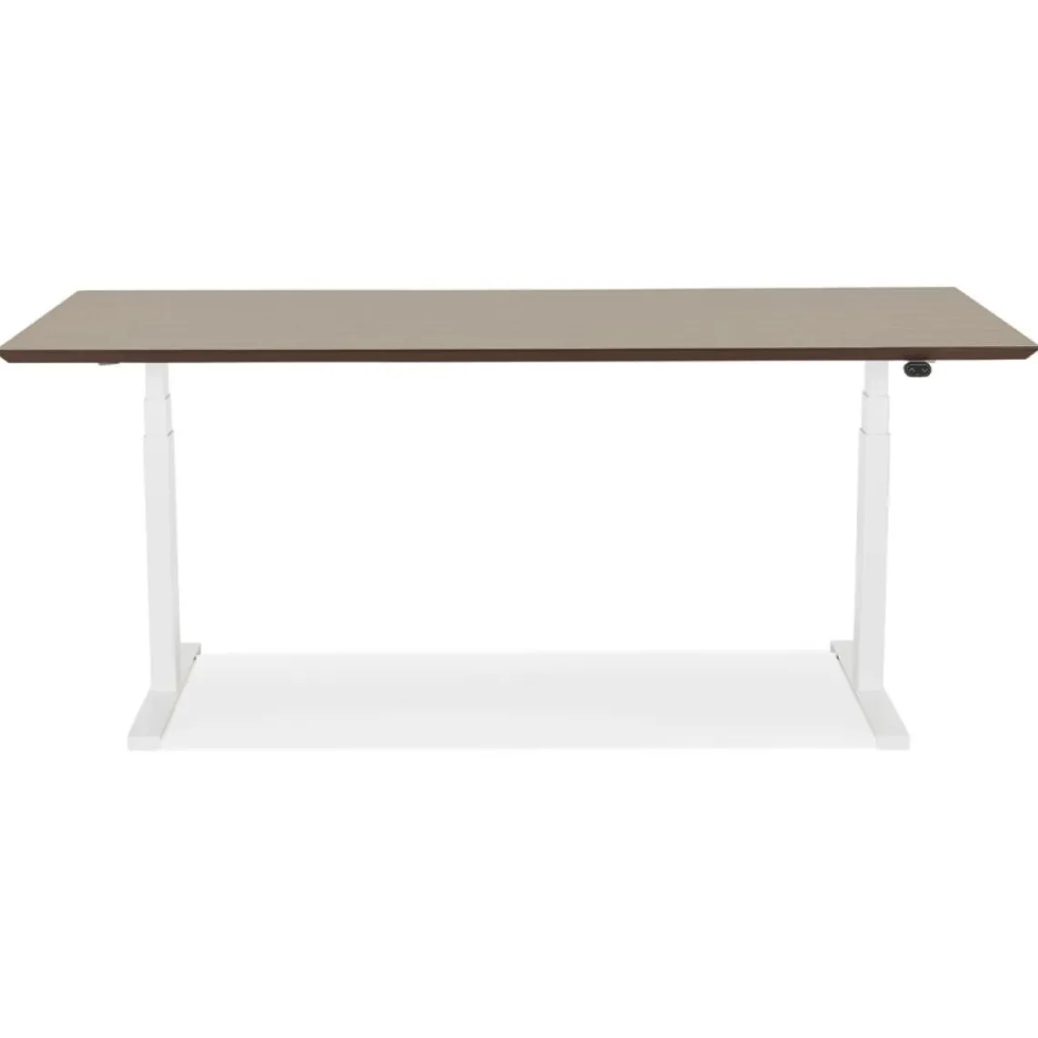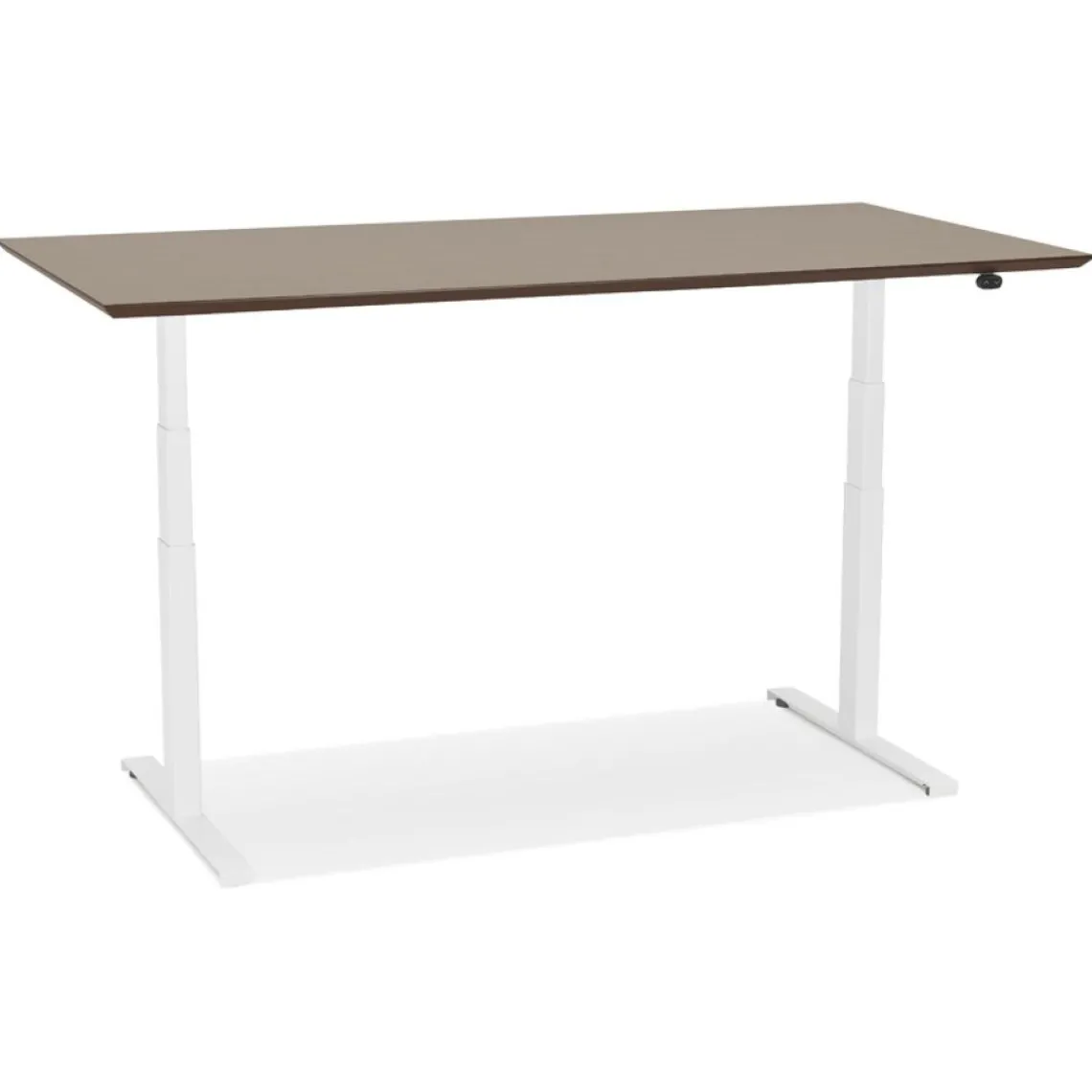 Caractéristiques Bureau assis-debout électrique ‘BIONIK’avec plateau en bois finition Noyer et pied en métal blanc