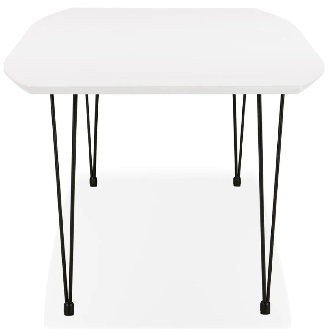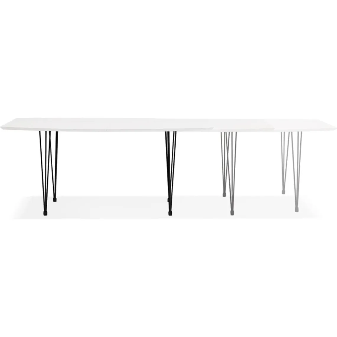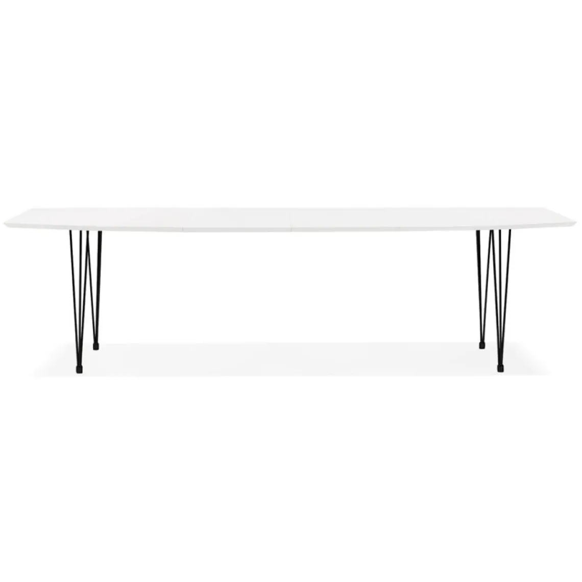 Caractéristiques Table à dîner design extensible ‘HUSKI’ blanche avec pieds noirs style industriel