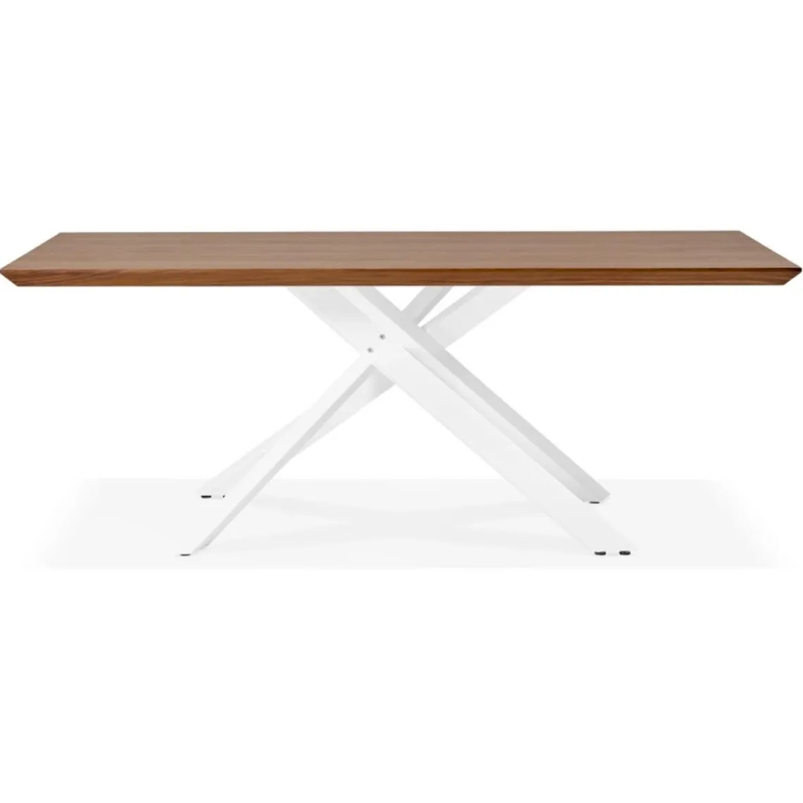 Caractéristiques Table à diner ‘WALABY’ en bois finition Noyer avec pied central en x blanc