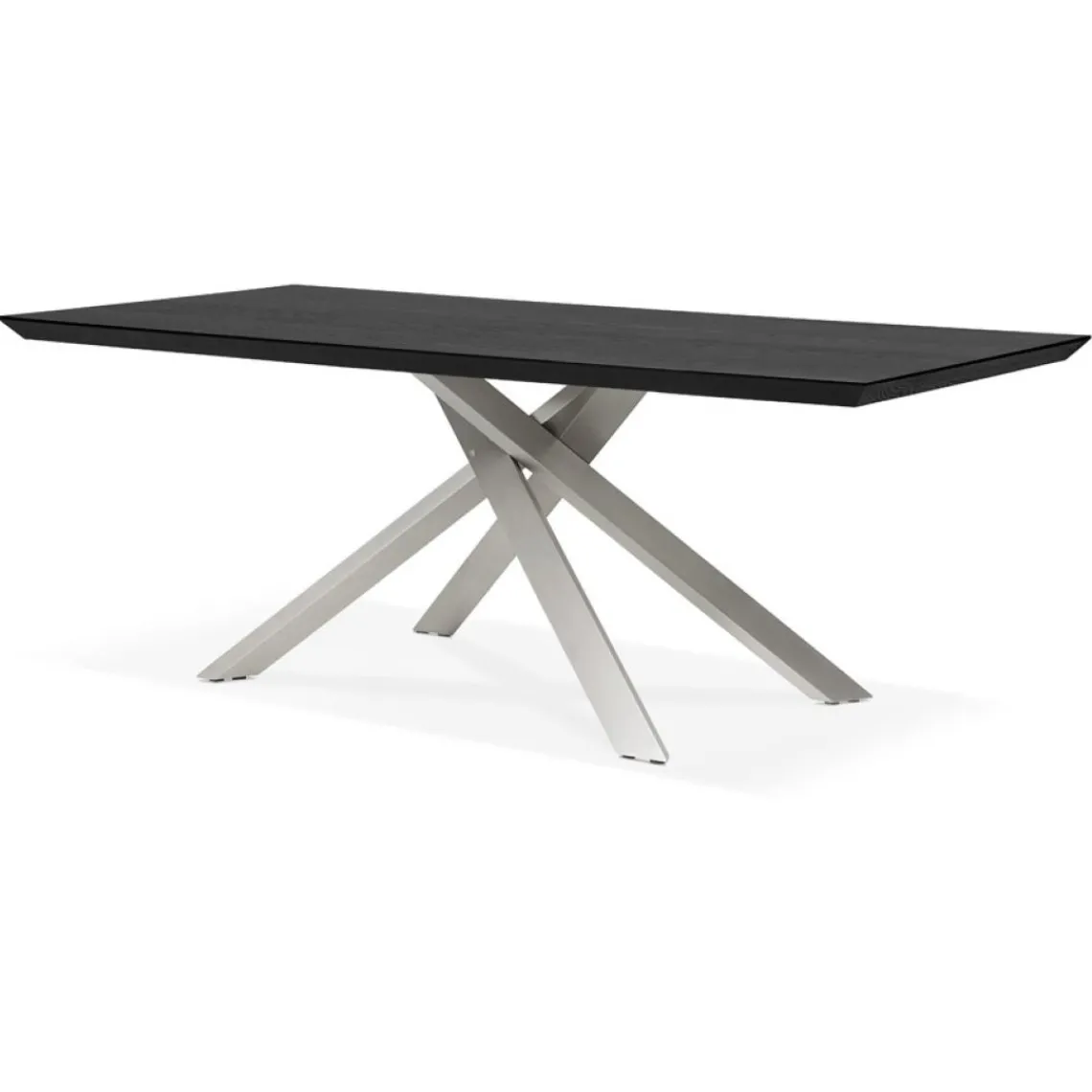 La table à manger design ‘WALABY’ de la marque Alterego est une pièce chic et moderne à la fois. Son dessus en bois noir ajoute une touche raffinée sensationnelle à n’importe quelle salle à manger. Son pied central en métal ajoute du caractère tout en offrant un support robuste et durable. La couleur grise du pied central s’harmonise parfaitement avec le dessus en bois noir, créant un rendu élégant et épuré. Avec une hauteur de 75,5cm et une longueur de 200cm, cette table offre amplement d’espace pour accueillir confortablement les invités. Confectionnée en métal, vous pouvez compter sur sa durabilité et sa résistance aux rayures. Les détails comme la finesse du grain du bois et la finition lisse du métal sont admirablement capturés dans l’image fournie.