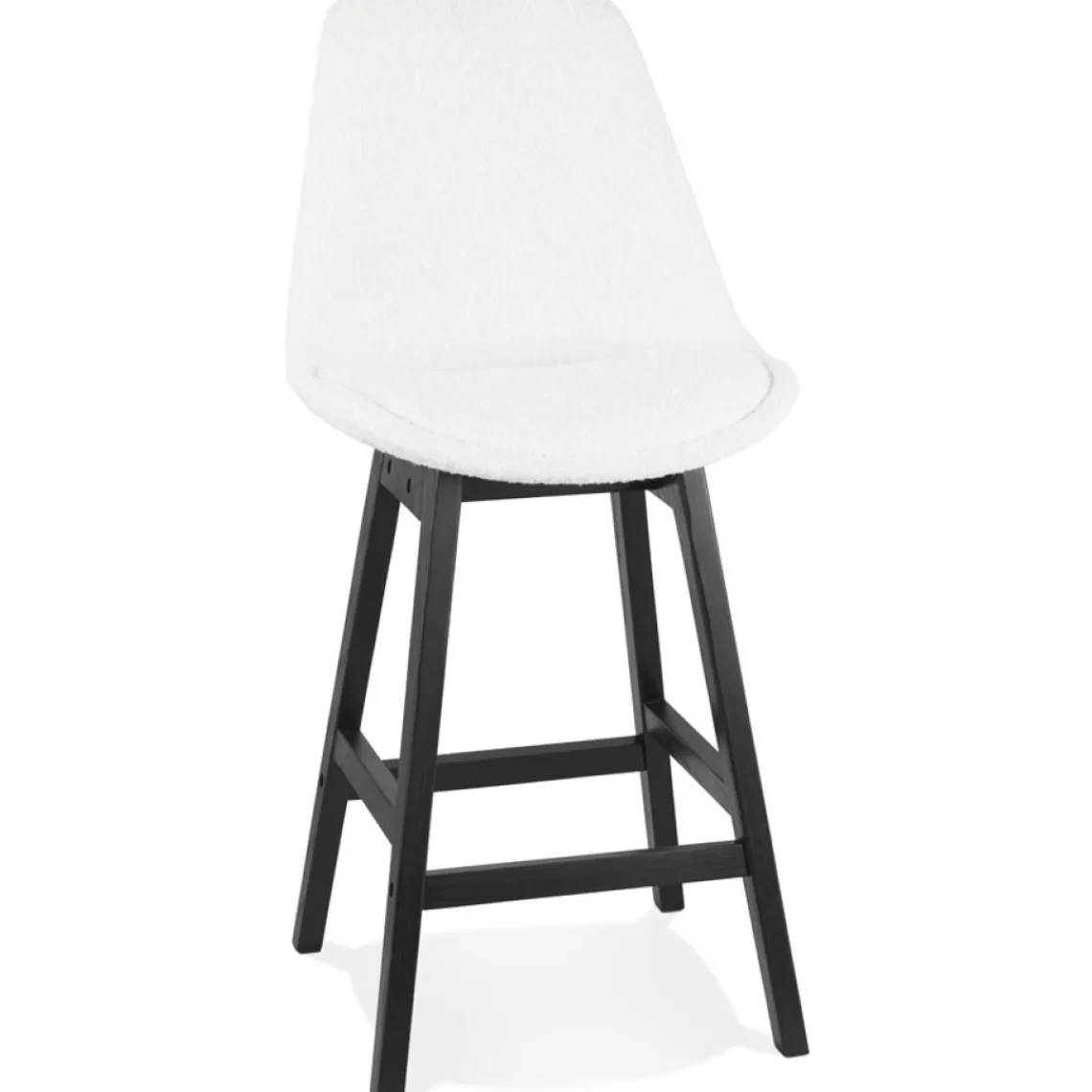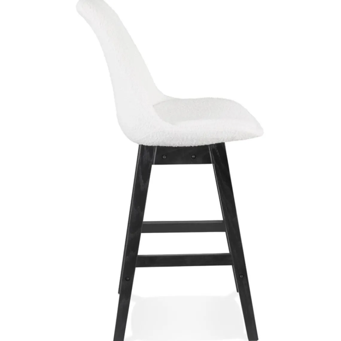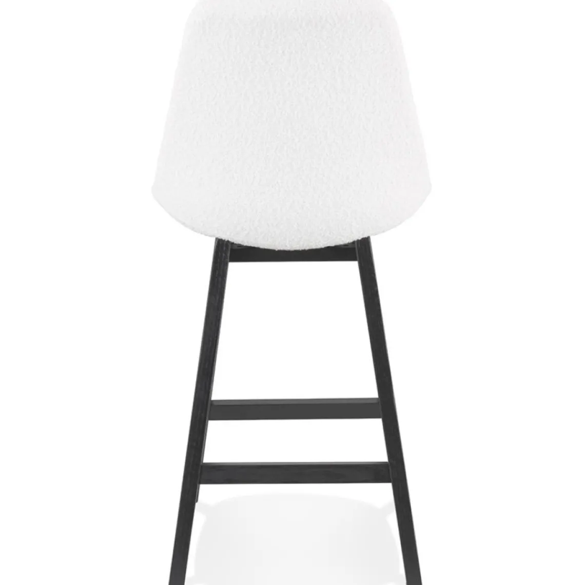 Caractéristiques Tabouret snack mi-hauteur ‘SANDRA MINI’ en tissu bouloché blanc et pied en bois noir