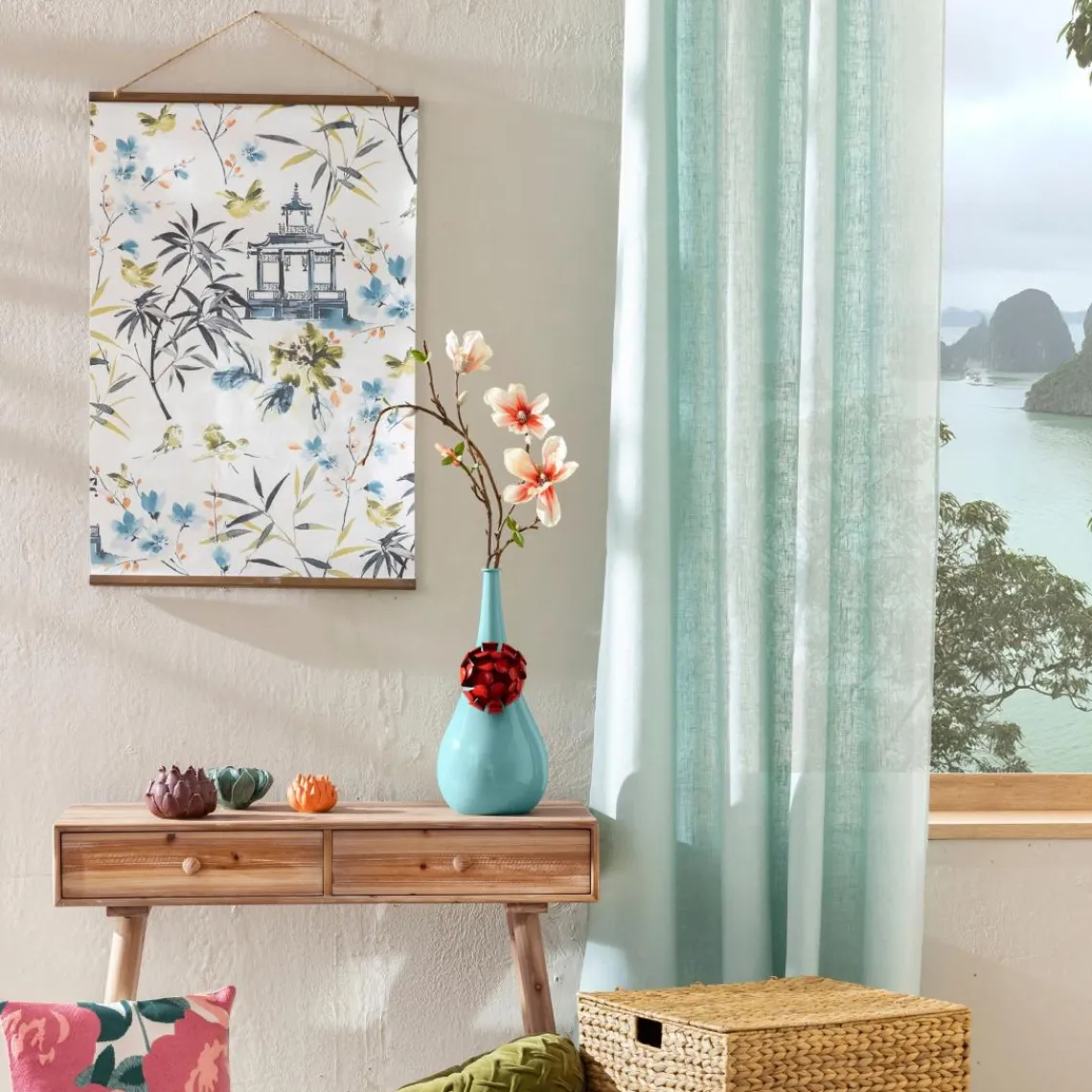 Transformez votre intérieur avec l’affiche à suspendre décor asiatique NOYA HANOI de Becquet. Imprimée sur toile polyester, elle allie esthétisme et durabilité. Son motif inspiré de l’Asie met en avant la ville d’Hanoï, avec ses temples et ses paysages luxuriants, créant une atmosphère apaisante et raffinée. Facile à installer, elle est équipée de deux baguettes en pin et d’une cordelette d’attache, permettant de la suspendre en toute simplicité. Avec ses dimensions de 60 x 90 cm, cette affiche est idéale pour apporter une touche d’exotisme et de douceur à votre décoration.