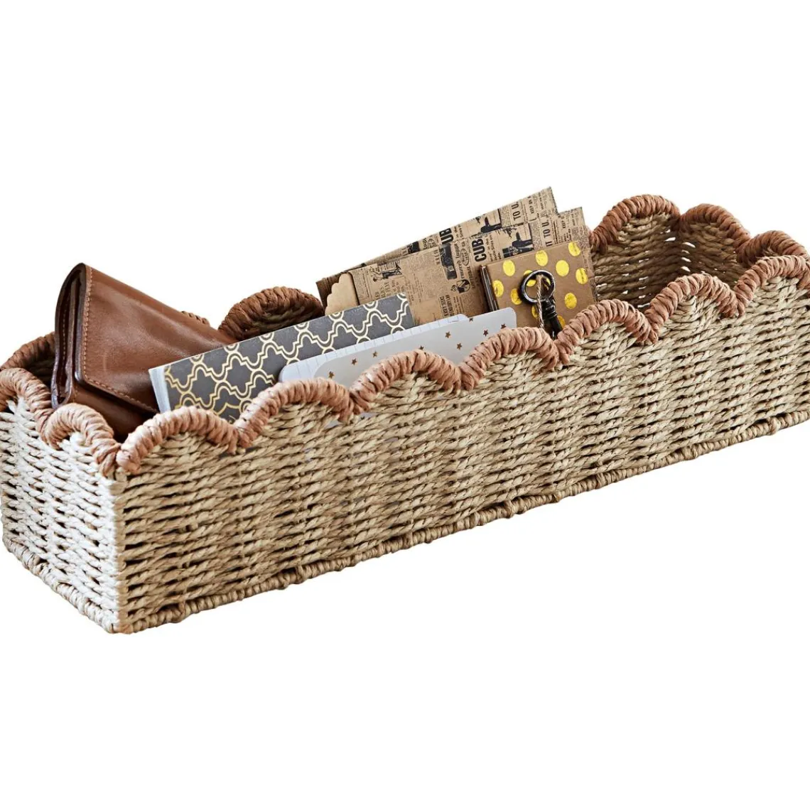 Découvrez cette magnifique corbeille rectangulaire Paterne de la marque Becquet, idéale pour compléter votre décoration intérieure. De couleur Beige, cet objet mesure 50 cm de long et 12 cm de haut. Réalisée en fibre végétale, elle se distingue par son style contemporain qui apporte une note d’élégance et de fraîcheur à votre espace. Sa forme rectangulaire est pratique et facilite son rangement. Elle se démarque par son aspect visuel texturé, mettant en lumière la qualité du matériau utilisé. C’est un véritable atout de style en plus d’être un espace de rangement idéal pour votre maison.