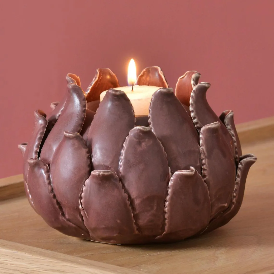 Caractéristiques Photophore fleur en céramique violet