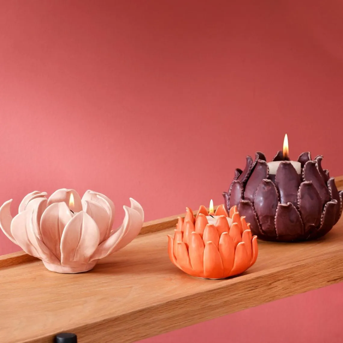 Laissez la magie opérer avec ces photophores fleur en céramique. Accessoire indispensable pour une déco cosy le soir venu, ce photophore fleur peut être placé sur un buffet, une table de fête ou dans le jardin… Dimensions coloris aubergine : ø 12,6 x 9,2 cm.