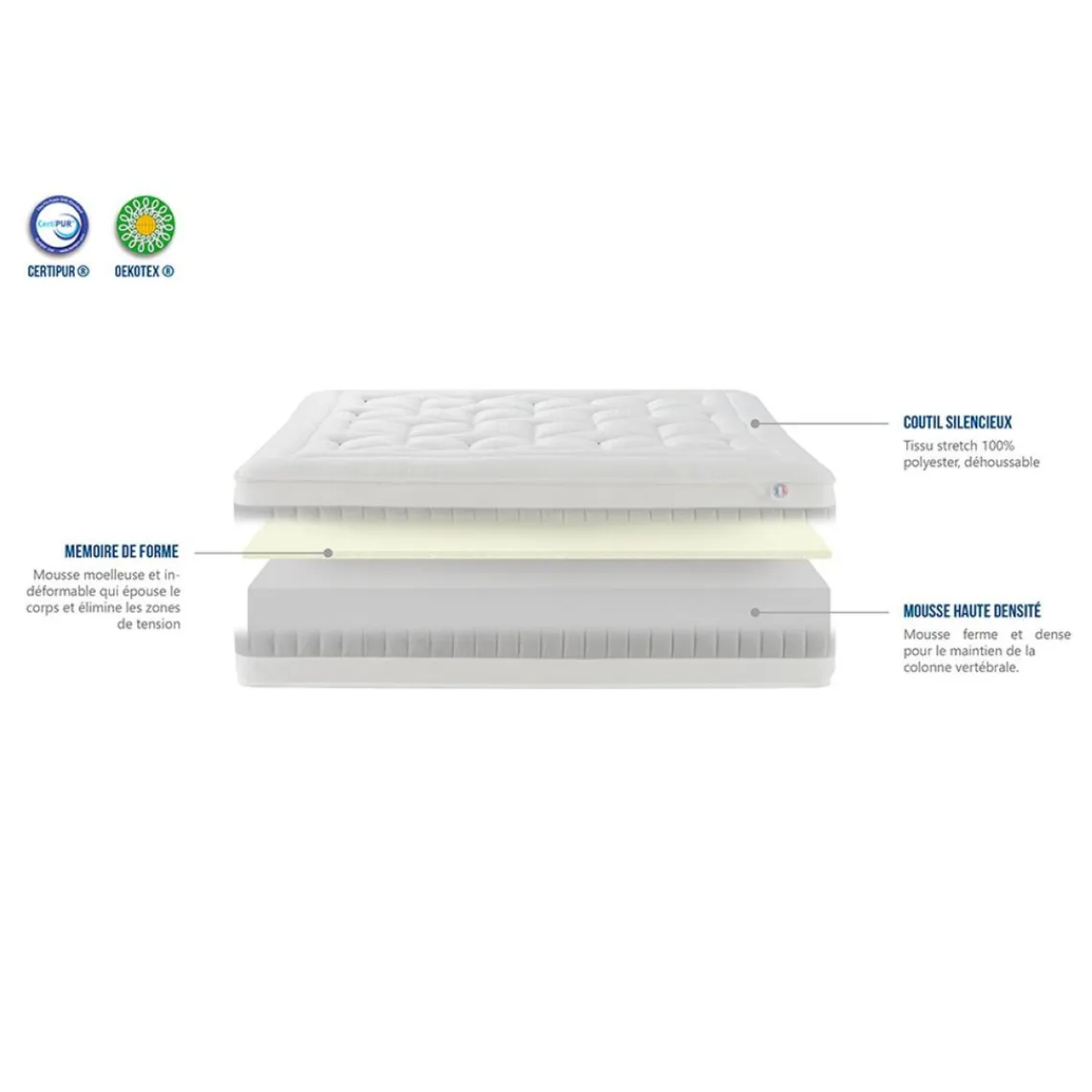 L’ensemble Grand Hôtel est composé d’un matelas à mémoire de forme et d’un sommier à lattes. Le matelas a un accueil progressif et un soutien ferme, offrant à la fois de la douceur au coucher et un bon soutien du corps. Sa mousse à mémoire de forme, quant à elle, lui confère un confort ergonomique : bien être assuré !