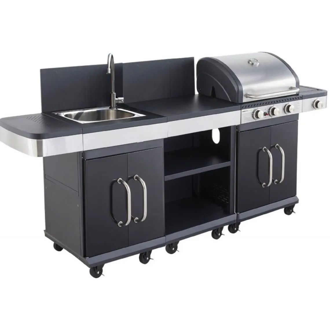Cuisine composée d’un barbecue, d’une desserte et d’un évier