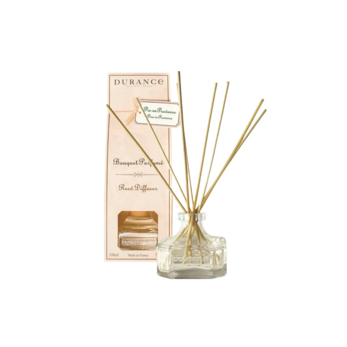Le Bouquet parfumé 100 ml Pin en Provence de la marque Durance embaumera votre maison pendant des semaines. Une fois placés dans le flacon, l’objet de décoration en bois et les tiges de rotin absorbent le parfum par capillarité, libérant ainsi de subtiles senteurs.