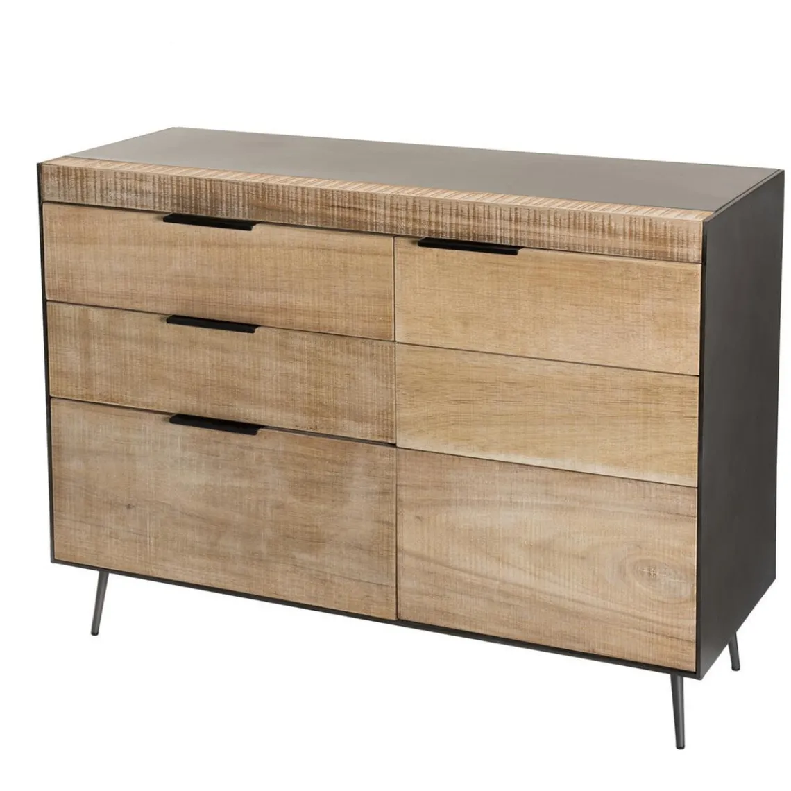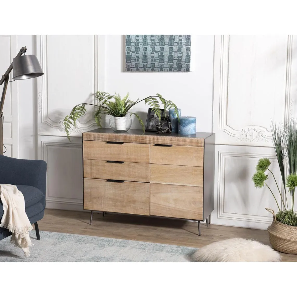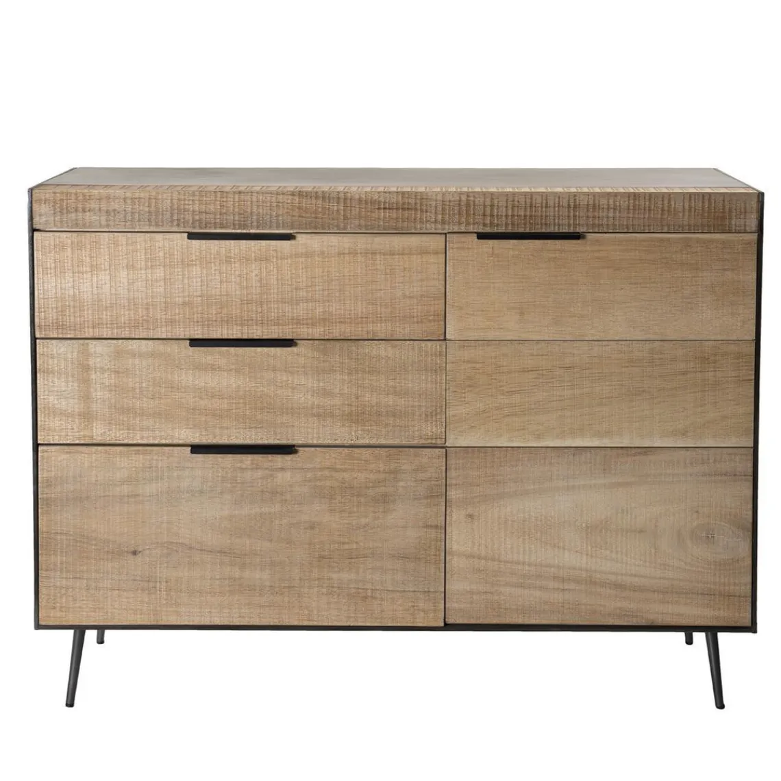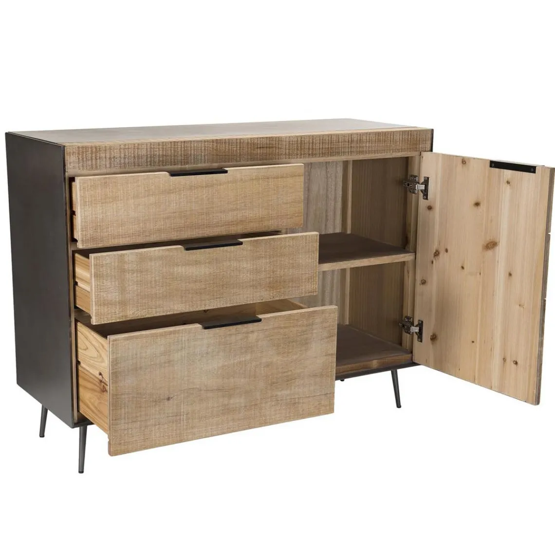 Caractéristiques Buffet 3 tiroirs 1 porte teck et pieds métal CARLA