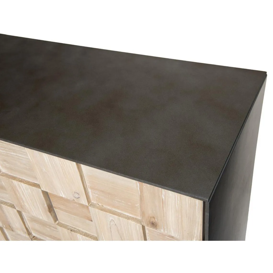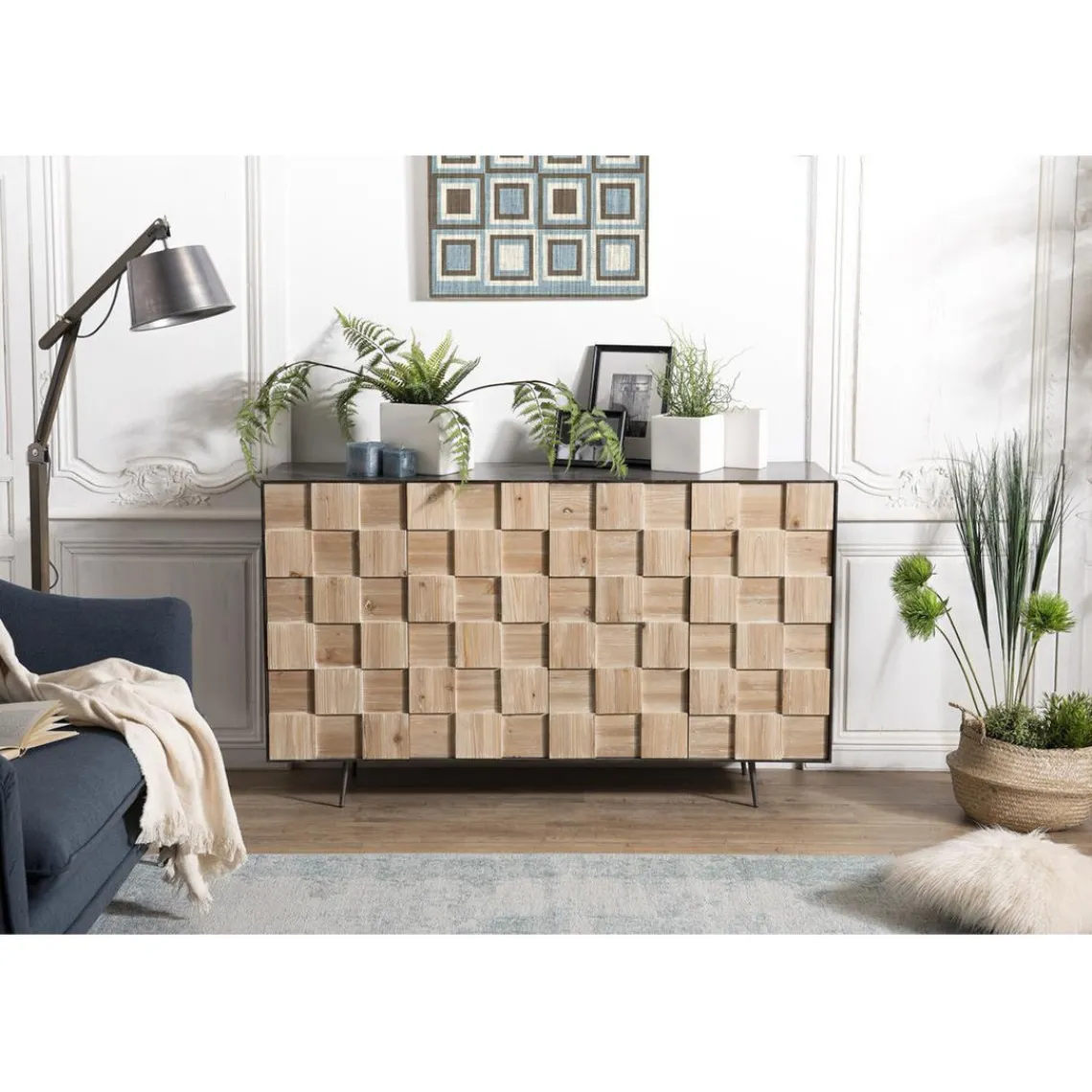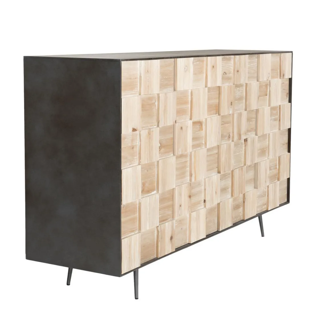 Adoptez le style industriel dans votre séjour en choisissant ce Buffet 4 portes Sapin et pieds métal CARLA. Les motifs en bois texturés sur les portes apportent une touche chic à votre intérieur. Le métal noir au niveau du plateau, les côtés et les piétements modernisent l’ensemble de ce meuble. Ce mobilier comporte quatre niches qui le rendent très pratique.