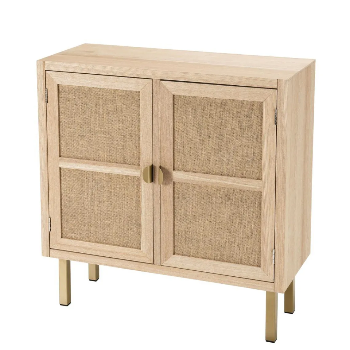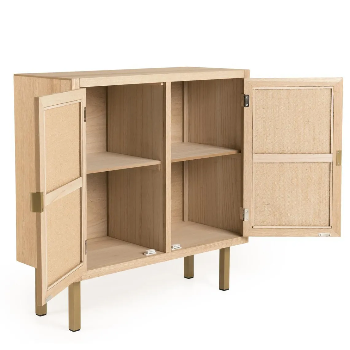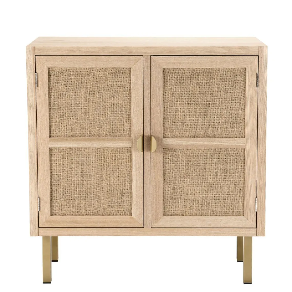 Caractéristiques Buffet ALINE 2 Portes Toile De Jute Pieds Métal Doré