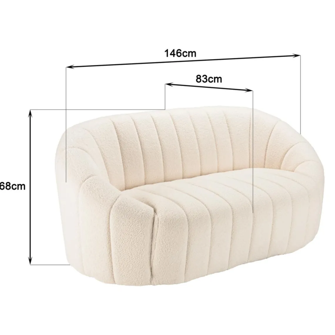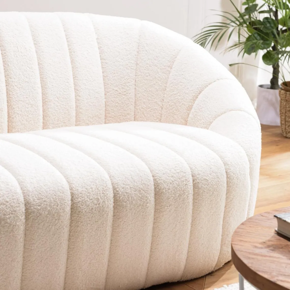 Caractéristiques Canapé coquillage 2 places en tissu bouclette écru LEOPOLD
