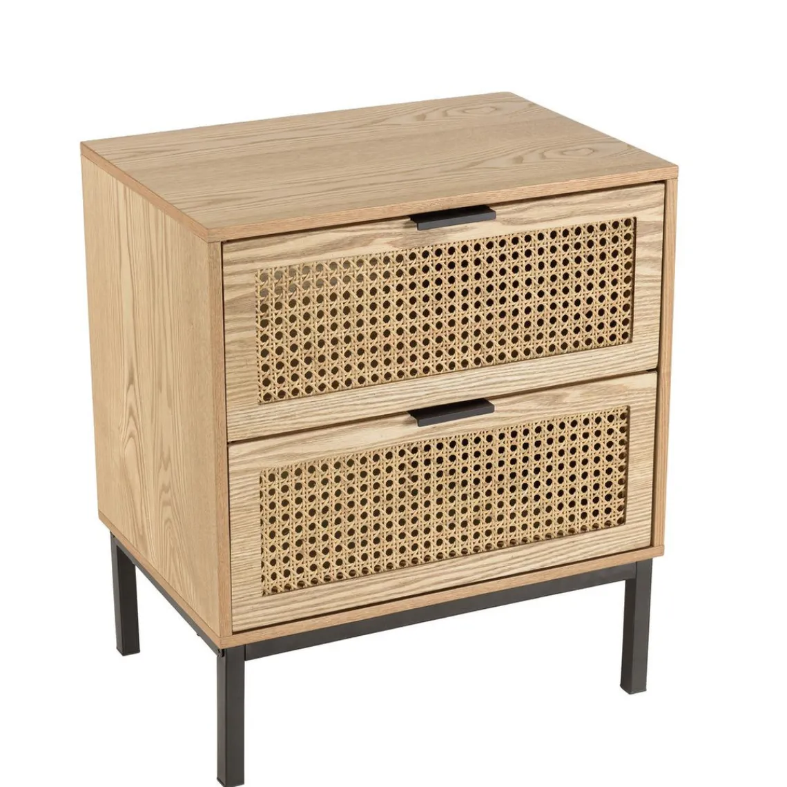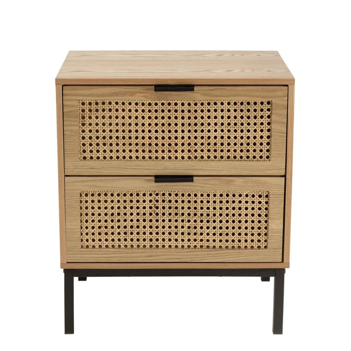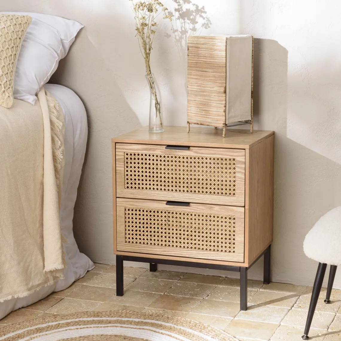 Caractéristiques Chevet 2 tiroirs cannage naturel pieds métal noir MARCEAU