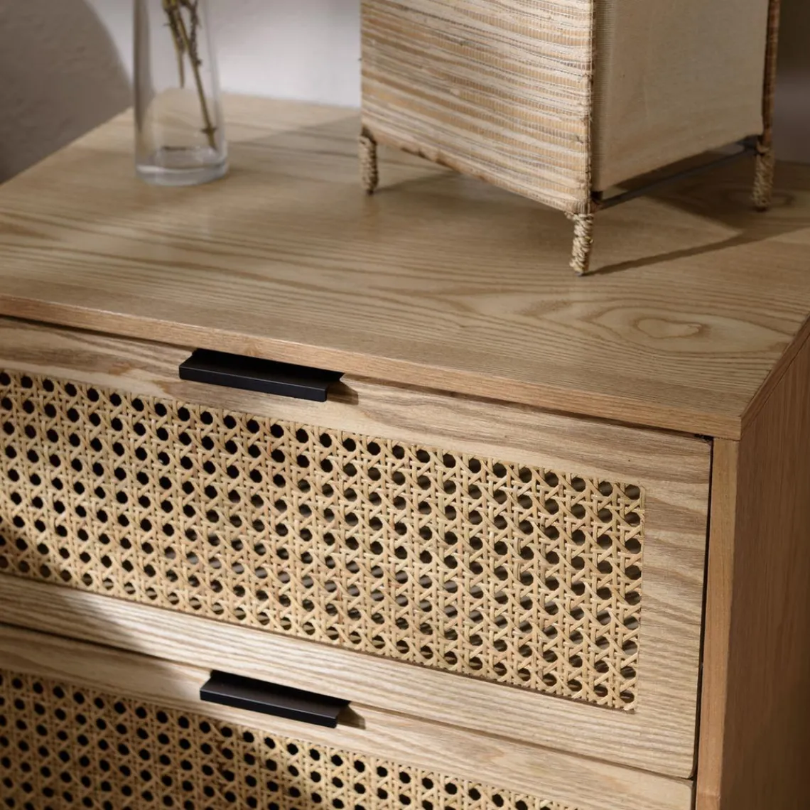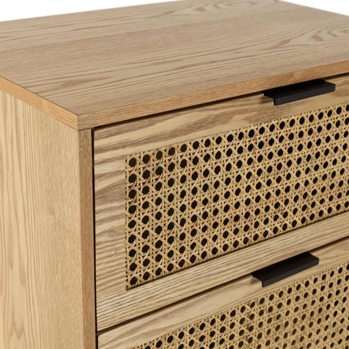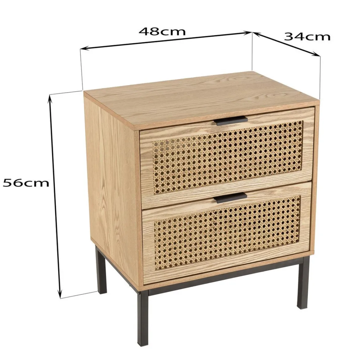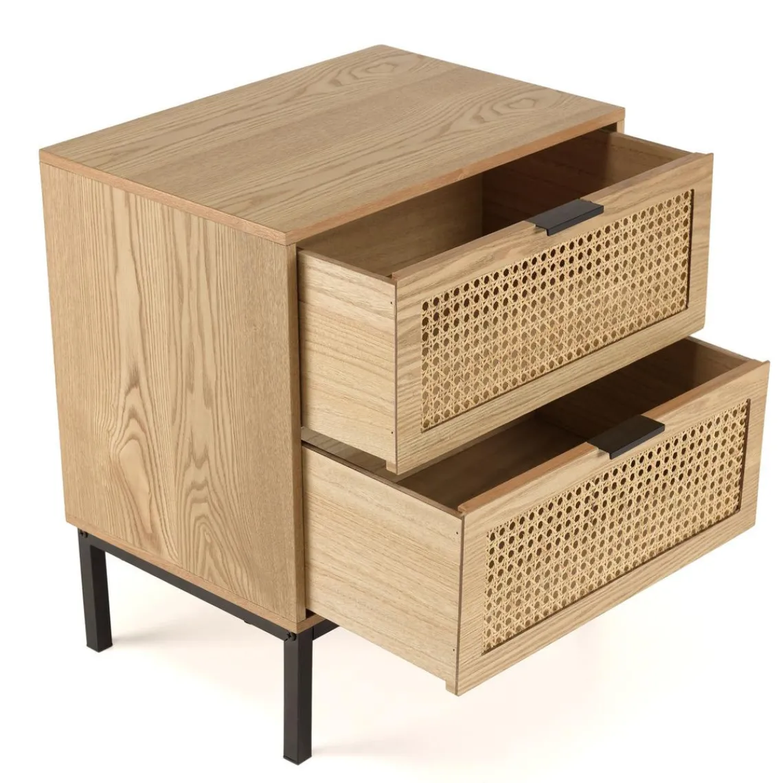 Caractéristiques Chevet 2 tiroirs cannage naturel pieds métal noir MARCEAU