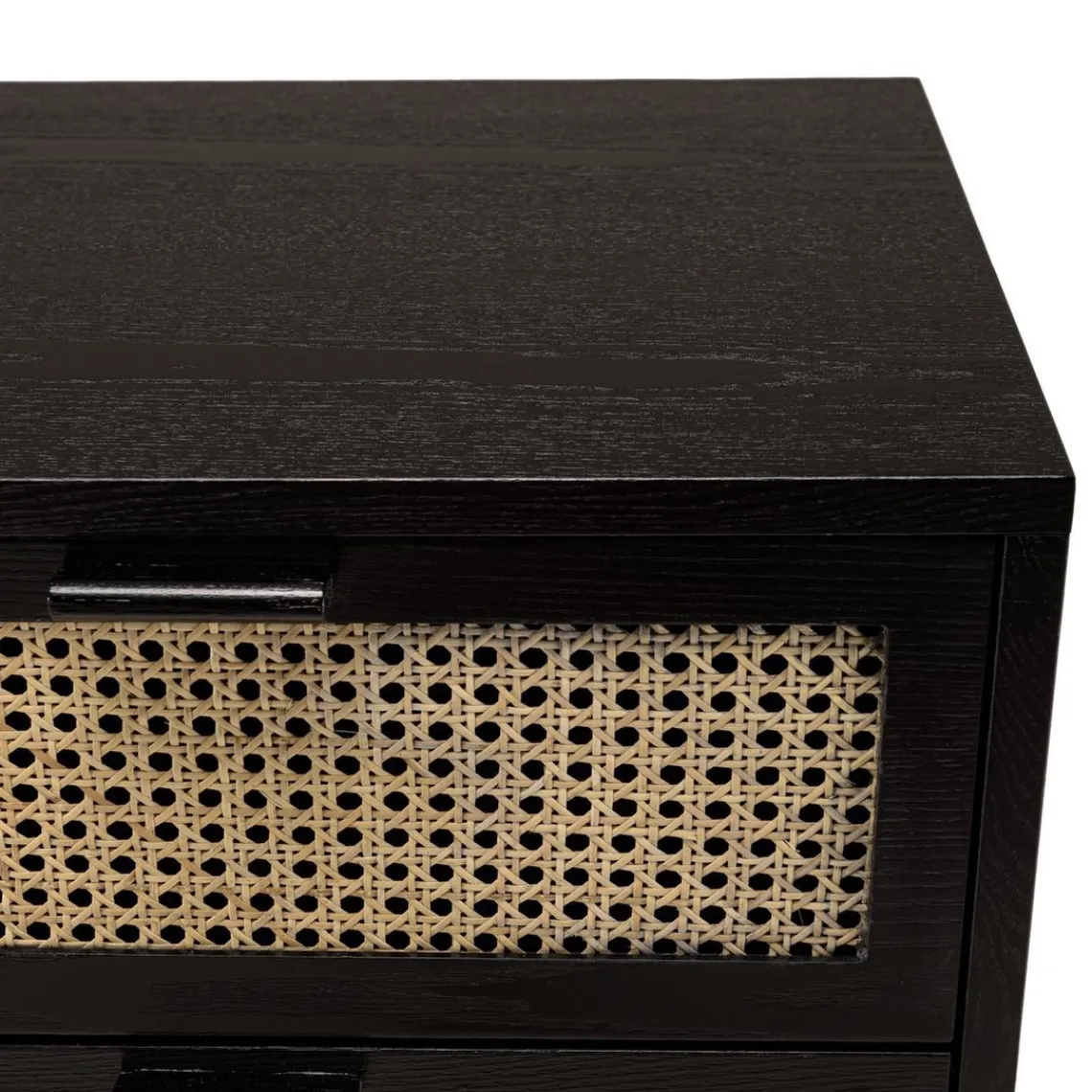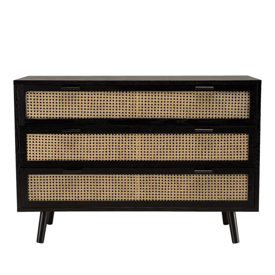 Caractéristiques Commode noire 3 tiroirs cannage naturel