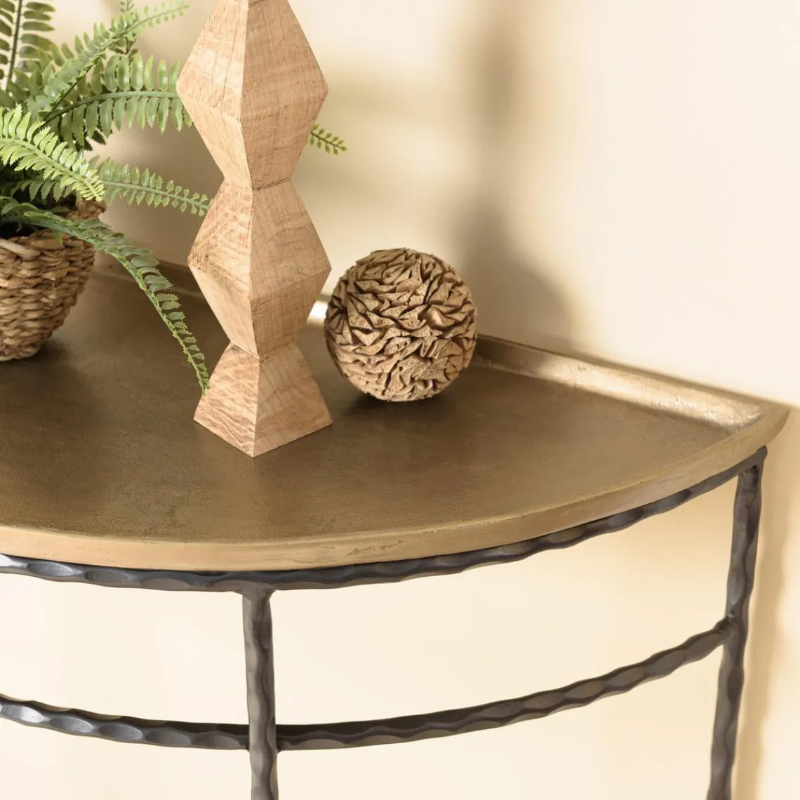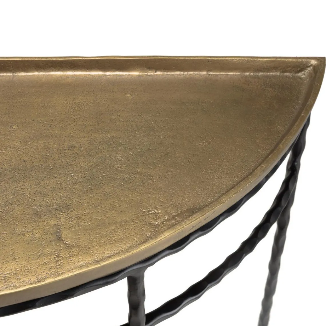 Caractéristiques Console demi-lune 90x36cm alu doré pieds métal noirs torsadés JOHAN